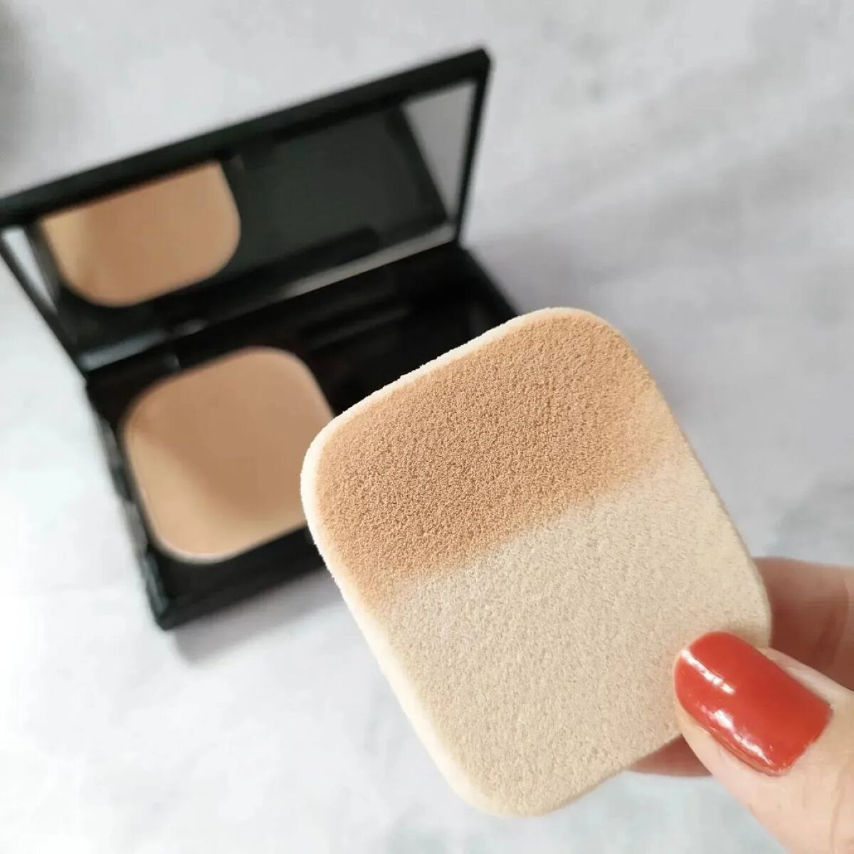 オイル高配合だからピタッと密着して毛穴をカバーし、粉感もない美しい仕上がり◎ 粉っぽく無い質感も好き!オイルの配合量が高いから粉浮きが目立たない◎ ナチュラルに見えるのに、隠したいポイントはきちんとカバーできているのが凄い。
