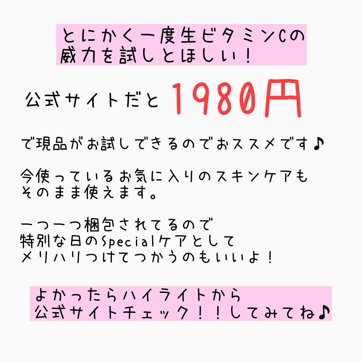- 【医薬部外品】 生ビタミンC(アスコルビン酸)を有効成分にした美白*1・シミ*1対策集中美容液です。高濃度「アスコルビン酸(ビタミンC)」の安定配合に成功。一回限りの小分け包装の「使用期限30秒*2の生美容液」が肌の角質層隅々へ浸透します。 *1メラニンの生成を抑え、しみ・そばかすを防ぐ *2美容液:出来立てをフレッシュな状態でご使用いただけるパッケージです。開封後30秒を過ぎてご使用いただいても品質に問題はありません。