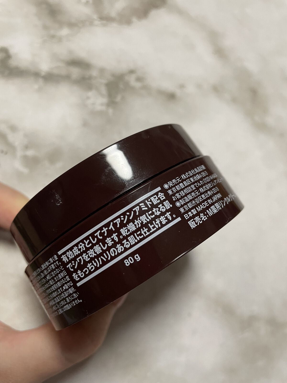 - <80g> 有効成分 ナイアシンアミド その他の成分 水、オリブ油、BG、シア脂、ベヘニルアルコール、トリエチルヘキサン酸グリセリル、親油型ステアリン酸グリセリル、濃グリセリン、ホホバ油、脂肪酸ジペンタエリスリチル-1、メタクリロイルオキシエチルホスホリルコリン・メタクリル酸ブチル共重合体液、1,2-ペンタンジオール、ジメチコン、ミツロウ、ステアリン酸POEソルビタン、ステアリン酸PEG、ミリスチン酸ミリスチル、POEメチルグルコシド、硬化油、グリセリル-N-(2-メタクリロイルオキシエチル)カルバメート・メタクリル酸ステアリル共重合体、2-メタクリロイルオキシエチルホスホリルコリン・メタクリル酸ステアリル共重合体、ヒアルロン酸Na-2、水溶性コラーゲン液(4)、水解コラーゲン末、椿エキス、アルニカエキス、イネ出穂前葉抽出加水分解物、カッコンエキス、桑エキス、シソ葉エキス、シャクヤクエキス、バラエキス、ユズセラミド、ヨクイニンエキス、ヨモギエキス、レモンエキス、ジグリセリン、トリポリヒドロキシステアリン酸ジペンタエリスリチル、トリ(カプリル・カプリン・ミリスチン・ステアリン酸)グリセリル、グリセリンエチルヘキシルエーテル、軽質流動イソパラフィン、タマリンドシードガム、アクリル酸・メタクリル酸アルキル共重合体、ポリアクリルアミド、POEラウリルエーテル、ビタミンE、水酸化K、クエン酸、クエン酸Na、フェノキシエタノール、香料 <30g> 有効成分 ナイアシンアミド その他の成分 水、オリブ油、BG、シア脂、ベヘニルアルコール、トリエチルヘキサン酸グリセリル、親油型ステアリン酸グリセリル、濃グリセリン、ホホバ油、脂肪酸ジペンタエリスリチル-1、メタクリロイルオキシエチルホスホリルコリン・メタクリル酸ブチル共重合体液、1,2-ペンタンジオール、ジメチコン、ミツロウ、ステアリン酸POEソルビタン、ステアリン酸PEG、ミリスチン酸ミリスチル、POEメチルグルコシド、硬化油、グリセリル-N-(2-メタクリロイルオキシエチル)カルバメート・メタクリル酸ステアリル共重合体、2-メタクリロイルオキシエチルホスホリルコリン・メタクリル酸ステアリル共重合体、ヒアルロン酸Na-2、水溶性コラーゲン液(4)、水解コラーゲン末、椿エキス、アルニカエキス、イネ出穂前葉抽出加水分解物、カッコンエキス、桑エキス、シソ葉エキス、シャクヤクエキス、バラエキス、ユズセラミド、ヨクイニンエキス、ヨモギエキス、レモンエキス、ジグリセリン、トリポリヒドロキシステアリン酸ジペンタエリスリチル、トリ(カプリル・カプリン・ミリスチン・ステアリン酸)グリセリル、グリセリンエチルヘキシルエーテル、軽質流動イソパラフィン、タマリンドシードガム、アクリル酸・メタクリル酸アルキル共重合体、ポリアクリルアミド、POEラウリルエーテル、ビタミンE、水酸化K、クエン酸、クエン酸Na、フェノキシエタノール、香料