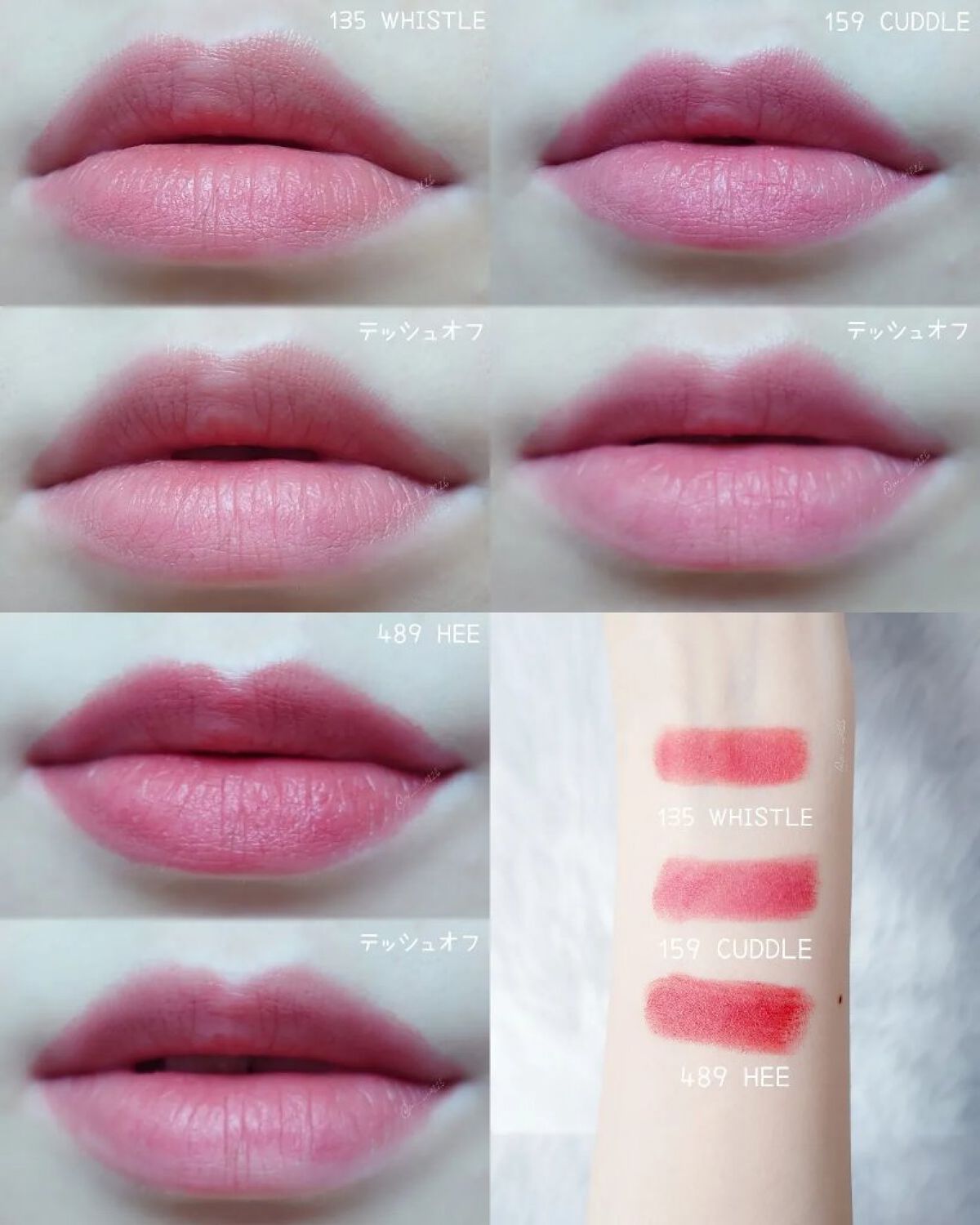 ✔01 アンコモンピンクヴィンテージ感あふれるピンクベースカラー✨ ✔02 ローズナッツトーンダウンしたバラ色のカラーにブラウンナッツを追加🌹 ✔05 アーモンドアップほのかなアーモンドカラーに盛り込んだヌードカラー🍫 サラサラしていてパウダリーな塗り心地👼 唇の治安が悪いのでリップえぐれるかな?と思ったけど意外とスーって塗れる😍💋笑 マットタイプで乾燥激しくなるのかと思いきや、上唇と下唇擦り合わせて?もサラサラ🌈 ベタベタ感もなし🙅🤍 あまりクッキリしないように、輪郭は指でぼかすと更に可愛い✨ 01をベースに02を重ねるといい感じに!どちらも浮かない色合いで使いやすい😌 05はヌードカラーなんだけど、馴染むし一気に秋🍂って感じのメイクになる💄 匂いは少し甘いチョコ🍫のような感じ。 秋冬は特に唇の治安悪いけど、何故かマット使いたくなっちゃうよね😍🍁笑 全色好みの色で買って正解🥺💓