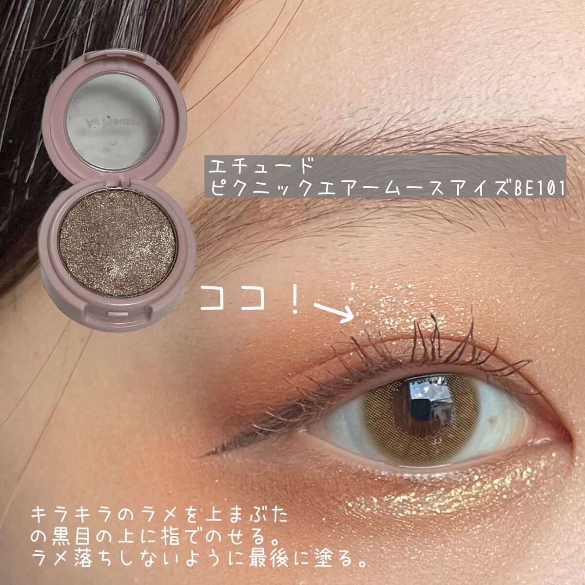 【密着感】とても高い!ほかのラメアイシャドウに比べてしっとりしてるから粉飛びしない!さすがデパコス👏 【良いところ】・密着度→しっとりしててラメ落ちがほとんどない◎・ラメの大きさ→唯一無二のラメの大きさ!こんなに大きいのに繊細に輝いて上品さもあるからすごい!濡れてるようにも見える😘 【使い方】涙袋に使ってぷっくり見せるも良し!アイホールの高いところに乗せてアクセントにするも良し!アイホール全体に乗せてもかんわいい!!❤️🔥