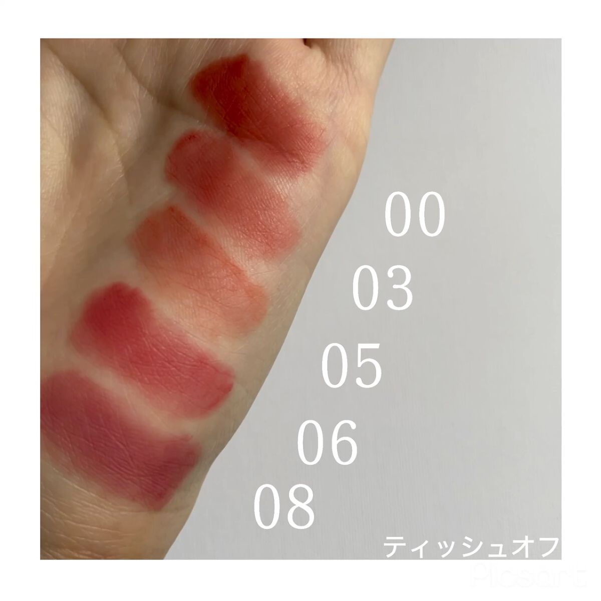 - <01モモシュー> ジメチコン、トリメチルシロキシケイ酸、ジメチコンクロスポリマー、リンゴ酸ジイソステアリル、カプリリルメチコン、トリベヘニン、酸化チタン、トリイソステアリン酸ポリグリセリル-2、加水分解ヒアルロン酸、イソステアリン酸ソルビタン、(ビニルジメチコン/メチコンシルセスキオキサン)クロスポリマー、イソドデカン、ポリヒドロキシステアリン酸、水添ポリシクロペンタジエン、パルミチン酸エチルヘキシル、ミリスチン酸イソプロピル、イソステアリン酸、レシチン、オクチルドデカノール、ジイソステアリン酸ポリグリセリル-2、ポリリシノレイン酸ポリグリセリル-3、酢酸トコフェロール、水、グリセリン、トリ(カプリル酸/カプリン酸)グリセリル、水添レシチン、セラミドNP、ステアロイルグルタミン酸Na、デヒドロ酢酸、香料、酸化鉄、黄4、赤202 <02シュシュ> ジメチコン、トリメチルシロキシケイ酸、ジメチコンクロスポリマー、カプリリルメチコン、トリベヘニン、リンゴ酸ジイソステアリル、酸化チタン、トリイソステアリン酸ポリグリセリル-2、酸化鉄、加水分解ヒアルロン酸、イソステアリン酸ソルビタン、(ビニルジメチコン/メチコンシルセスキオキサン)クロスポリマー、イソドデカン、ポリヒドロキシステアリン酸、水添ポリシクロペンタジエン、パルミチン酸エチルヘキシル、ミリスチン酸イソプロピル、イソステアリン酸、レシチン、オクチルドデカノール、ジイソステアリン酸ポリグリセリル-2、ポリリシノレイン酸ポリグリセリル-3、酢酸トコフェロール、水、グリセリン、トリ(カプリル酸/カプリン酸)グリセリル、水添レシチン、セラミドNP、ステアロイルグルタミン酸Na、デヒドロ酢酸、香料、黄4、赤202 <03ソンスドン> ジメチコン、トリメチルシロキシケイ酸、ジメチコンクロスポリマー、カプリリルメチコン、トリベヘニン、リンゴ酸ジイソステアリル、酸化チタン、トリイソステアリン酸ポリグリセリル-2、加水分解ヒアルロン酸、イソステアリン酸ソルビタン、(ビニルジメチコン/メチコンシルセスキオキサン)クロスポリマー、イソドデカン、ポリヒドロキシステアリン酸、水添ポリシクロペンタジエン、パルミチン酸エチルヘキシル、ミリスチン酸イソプロピル、イソステアリン酸、レシチン、オクチルドデカノール、ジイソステアリン酸ポリグリセリル-2、ポリリシノレイン酸ポリグリセリル-3、酢酸トコフェロール、水、グリセリン、トリ(カプリル酸/カプリン酸)グリセリル、水添レシチン、セラミドNP、ステアロイルグルタミン酸Na、デヒドロ酢酸、香料、酸化鉄、黄5、赤202 <04花ビラ> ジメチコン、トリメチルシロキシケイ酸、ジメチコンクロスポリマー、カプリリルメチコン、トリベヘニン、リンゴ酸ジイソステアリル、赤202、ジイソステアリン酸ポリグリセリル-2、加水分解ヒアルロン酸、イソステアリン酸ソルビタン、(ビニルジメチコン/メチコンシルセスキオキサン)クロスポリマー、イソドデカン、トリイソステアリン酸ポリグリセリル-2、ポリヒドロキシステアリン酸、水添ポリシクロペンタジエン、パルミチン酸エチルヘキシル、ミリスチン酸イソプロピル、イソステアリン酸、レシチン、オクチルドデカノール、ポリリシノレイン酸ポリグリセリル-3、酢酸トコフェロール、水、グリセリン、トリ(カプリル酸/カプリン酸)グリセリル、水添レシチン、セラミドNP、ステアロイルグルタミン酸Na、デヒドロ酢酸、香料、酸化鉄、酸化チタン、赤230(1) <05ミルクティー> ジメチコン、トリメチルシロキシケイ酸、ジメチコンクロスポリマー、カプリリルメチコン、トリベヘニン、リンゴ酸ジイソステアリル、酸化チタン、トリイソステアリン酸ポリグリセリル-2、酸化鉄、加水分解ヒアルロン酸、イソステアリン酸ソルビタン、(ビニルジメチコン/メチコンシルセスキオキサン)クロスポリマー、イソドデカン、ポリヒドロキシステアリン酸、水添ポリシクロペンタジエン、パルミチン酸エチルヘキシル、ミリスチン酸イソプロピル、イソステアリン酸、レシチン、オクチルドデカノール、ポリリシノレイン酸ポリグリセリル-3、酢酸トコフェロール、ジイソステアリン酸ポリグリセリル-2、水、グリセリン、トリ(カプリル酸/カプリン酸)グリセリル、水添レシチン、セラミドNP、ステアロイルグルタミン酸Na、デヒドロ酢酸、香料、赤202、赤227 <06ソウルローズ> ジメチコン、トリメチルシロキシケイ酸、ジメチコンクロスポリマー、カプリリルメチコン、トリベヘニン、リンゴ酸ジイソステアリル、トリイソステアリン酸ポリグリセリル-2、酸化チタン、酸化鉄、加水分解ヒアルロン酸、イソステアリン酸ソルビタン、(ビニルジメチコン/メチコンシルセスキオキサン)クロスポリマー、イソドデカン、ポリヒドロキシステアリン酸、水添ポリシクロペンタジエン、パルミチン酸エチルヘキシル、ミリスチン酸イソプロピル、イソステアリン酸、レシチン、ジイソステア
