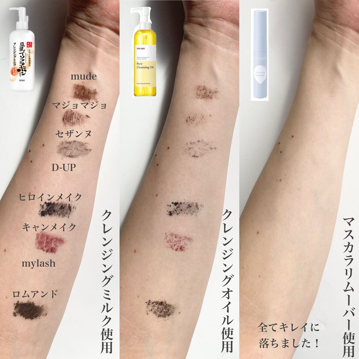 落としやすさ、使いやすさで選ぶならやっぱり王道のヒロインメイク! コストを抑えながらもしっかり落としたい方はセザンヌ! 下まつげまで細かく丁寧に落としたい方はキャンメイク! ヒロインメイクの落ちやすさは人気なだけあって本物でしたが、コスパ面や衛生面を考えるとセザンヌを選ぶかな〜と思いました! キャンメイクもセザンヌと同じぐらい落ちましたが、時短でメイクオフしたい私にとっては、ヒロインメイクやセザンヌの液の付きやすさが合っていました🥺🙏