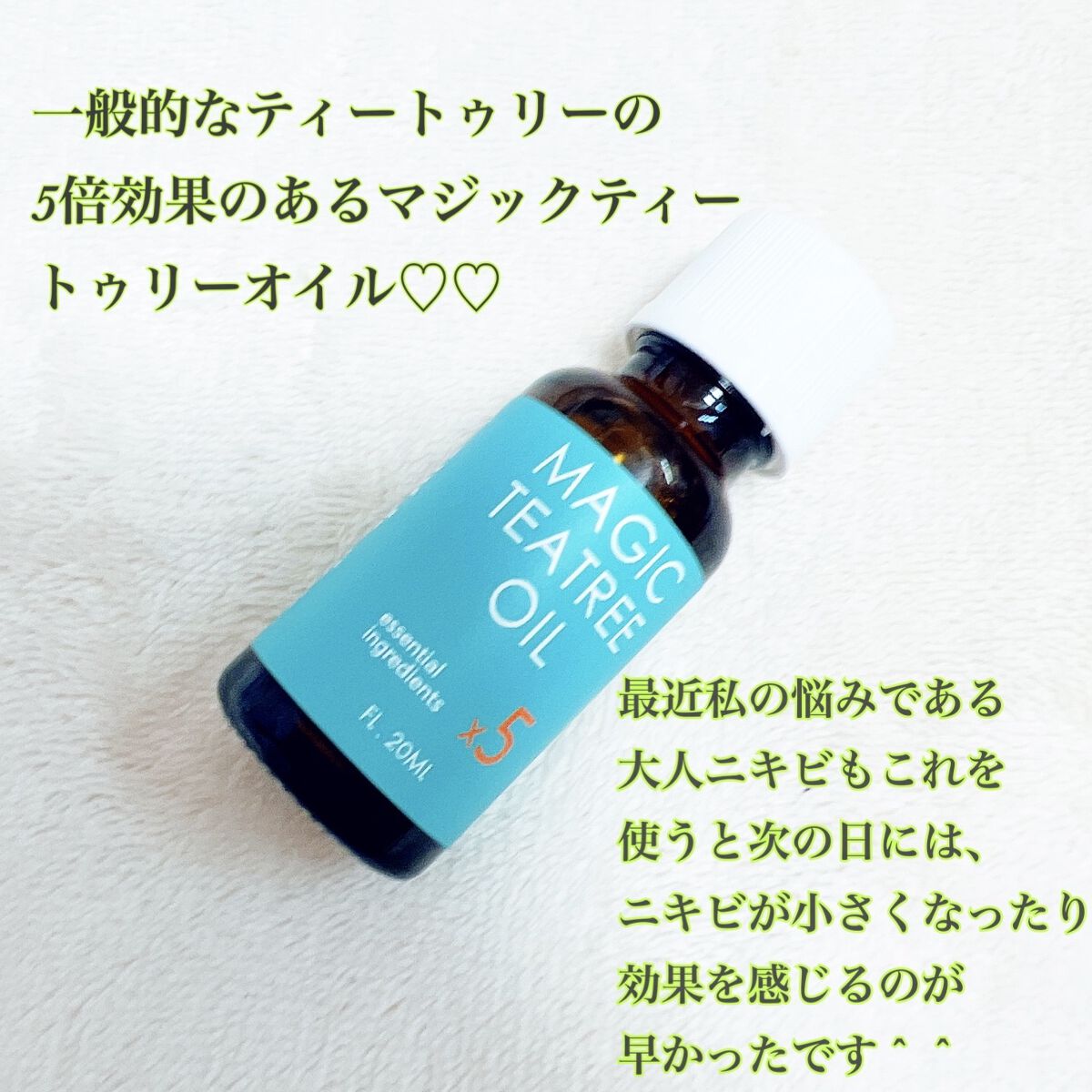 - マジックティーツリーオイルは、乾燥や皮脂による肌悩みをスポットケアし、整える商品です。ブラン代表の整肌成分である4‐テルピネオールで肌トラブルの原因の1つである皮脂を素早くケアします。 【このような方におススメ】 ✔乾燥による肌悩みが気になる方 ✔過度な皮脂と油分が気になる方 ✔べたつきのないスキンケアを探されている方 ✔肌荒れを防ぎたい方 ✔年齢性別肌タイプ関係なく使用できる商品を探されている方 【使用方法】 ①洗顔後、コットンに適量を取り、軽くふき取った後馴染ませます。 ②気になる部分の肌をきれいに洗顔後、トナー→クリームの順でお肌を整えます。 ③綿棒に1~2滴落とし、気になる部分に塗ります。 経過を見て朝晩のスキンケアの最後の段階に塗ることを繰り返します。