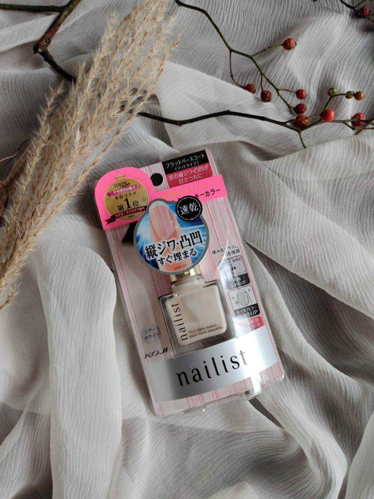 - 爪表面の縦ジワや凸凹を埋めてフラットにするベースコート。爪の色を整え、ネイルカラーの発色をよくするシアーホワイト。 〇速乾タイプ 〇保湿成分配合