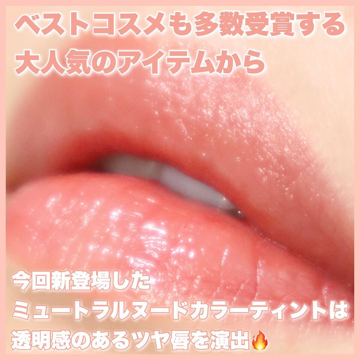 上品で抜け感のあるピーチヌードカラー🍑 塗った瞬間から可愛い🤤ふわふわした淡い発色で、桃のような甘くて柔らかいヌードカラーが本来の唇の色に馴染みぷるっと透け感のある仕上がりに🫧 少しくすみも感じられる、可愛いカラーです☺︎ ぜひチェックしてみてね💫