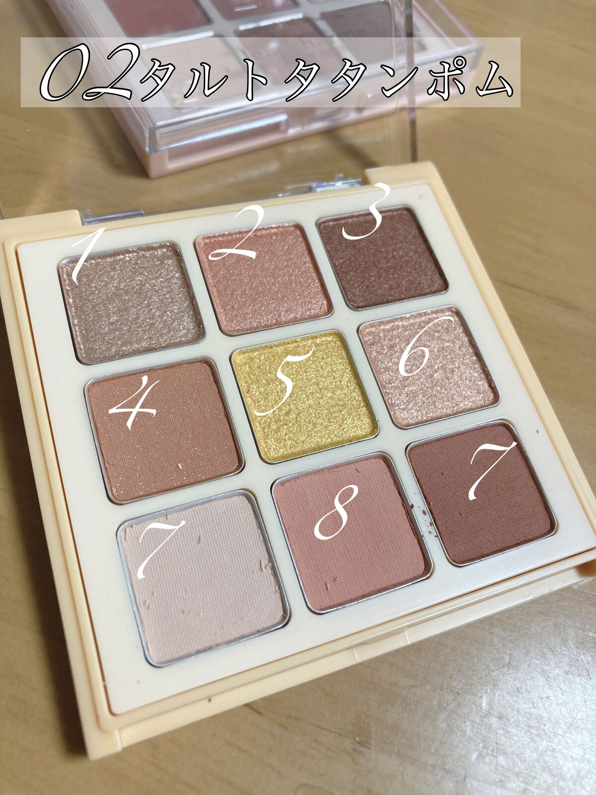 - 01 <a/f> ジメチコン、トリ(カプリル酸/カプリン酸)グリセリル、(ジメチコン/ビニルジメチコン) クロスポリマー、タルク、カルナウバロウ、クロルフェネシン、デヒドロ酢酸Na、ラウロイルリシン、トコフェロール、ホウケイ酸(Ca/Al)、マイカ、(PET/ポリメタクリル酸メチル)ラミネート、酸化チタン、酸化鉄、赤226、グンジョウ、酸化スズ <b/e> トリ(カプリル酸/カプリン酸)グリセリル、シリカ、ダイマージリノール酸ジ(イソステアリル/フィトステリル)、合成フルオロフロゴパイト、ダイマージリノール酸ダイマージリノレイルビス(ベヘニル/イソステアリル/フィトステリル)、水酸化Al、カルナウバロウ、トコフェロール、ホウケイ酸(Ca/Al)、マイカ、酸化チタン、酸化鉄、グンジョウ、赤226、コンジョウ、酸化スズ <c> アルミナ、合成フルオロフロゴパイト、タルク、ジフェニルシロキシフェニルトリメチコン、水添ポリデセン、(イソステアリン酸ポリグリセリル-2/ダイマージリノール酸)コポリマー、ジメチコン、硫酸Ba、ジステアリン酸Al、クロルフェネシン、デヒドロ酢酸Na、ステアリン酸Mg、トコフェロール、酸化チタン、マイカ、酸化鉄、グンジョウ、酸化スズ <d/g/h/i> タルク、合成フルオロフロゴパイト、窒化ホウ素、スクワラン、ナイロン-12、(ビニルジメチコン/メチコンシルセスキオキサン)クロスポリマー、ペンチレングリコール、ホホバ種子油、デヒドロ酢酸Na、水酸化Al、シア脂、トコフェロール、マイカ、酸化鉄、酸化チタン、赤226、グンジョウ、ホウケイ酸(Ca/Al)、酸化スズ 02 <a> ジメチコン、トリ(カプリル酸/カプリン酸)グリセリル、(ジメチコン/ビニルジメチコン)クロスポリマー、タルク、カルナウバロウ、クロルフェネシン、デヒドロ酢酸Na、ラウロイルリシン、トコフェロール、マイカ、ホウケイ酸(Ca/Al)、酸化チタン、酸化鉄、酸化スズ <b> アルミナ、タルク、合成フルオロフロゴパイト、ジフェニルシロキシフェニルトリメチコン、水添ポリデセン、(イソステアリン酸ポリグリセリル-2/ダイマージリノール酸)コポリマー、ジメチコン、硫酸Ba、ジステアリン酸Al、ステアリン酸Mg、クロルフェネシン、デヒドロ酢酸Na、トコフェロール、酸化チタン、マイカ、酸化鉄、赤226、グンジョウ、酸化スズ <c/e/f> トリ(カプリル酸/カプリン酸)グリセリル、シリカ、ダイマージリノール酸ジ(イソステアリル/フィトステリル)、ダイマージリノール酸ダイマージリノレイルビス(ベヘニル/イソステアリル/フィトステリル)、水酸化Al、合成フルオロフロゴパイト、カルナウバロウ、トコフェロール、マイカ、ホウケイ酸(Ca/Al)、酸化チタン、酸化鉄、黄4、赤226、グンジョウ、酸化スズ <d/g/h/i> タルク、合成フルオロフロゴパイト、窒化ホウ素、スクワラン、ナイロン-12、(ビニルジメチコン/メチコンシルセスキオキサン)クロスポリマー、ペンチレングリコール、ホホバ種子油、デヒドロ酢酸Na、水酸化Al、シア脂、トコフェロール、マイカ、酸化鉄、酸化チタン、ホウケイ酸(Ca/Al)、赤226、黄4、グンジョウ、酸化スズ ※アルファベットはパレットを正面から見た1段目左からabc、2段目左からdef、3段目左からghiの順です。