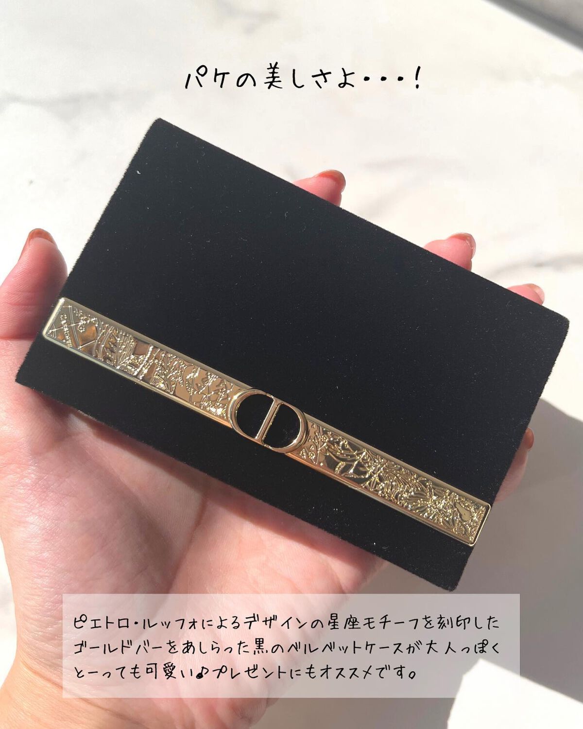 - ディオールから、ホリデー シーズンの眼差しを彩るアイ マルチユースなメイクアップ パレットが登場。パッケージには、ピエトロ・ルッフォがヴェルサイユ宮殿の象徴的なモチーフにインスパイアされデザインした、ゴールドの華やかな模様が施されています。CHRISTIAN DIORと刻印された金色の留め具で飾られたクチュール ケースの中には、美しいエンボスが施されたエレガントなシェードがおさめられています。 - アイシャドウ 5色 美しい発色と、軽やかでソフトな質感のロングウェア アイシャドウ - チーク カラー:4色 フローラル スキンケア成分(1*)を配合したチークとハイライター - リップ カラー:4色 フローラル リップ ケア成分(*3)を配合したサテン フィニッシュのリップ カラー
