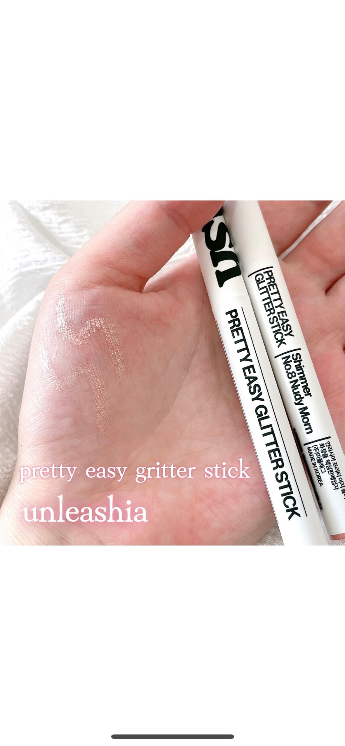 unleashia様より提供していただきました。ご提供いただきありがとうございます🙇♀️今回は涙袋メイクにぴったりな濡れ艶スティックシャドウのご紹介⋆⸜🌷⸝⋆♡unleashiaプリティーイージーグリッタースティックN°2フラッター¥1,...