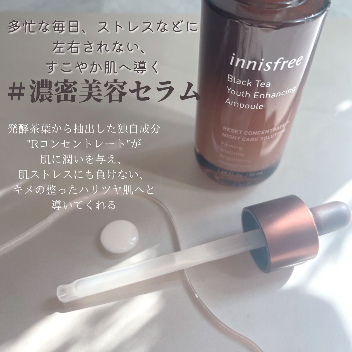 - ※「ブラックティー ユース セラム」のリニューアル品です。 多忙な毎日、ストレス*1などに左右されない、すこやか肌へ導く濃密美容セラム 1. イキイキすこやか肌へと導く、発酵茶葉由来”Rコンセントレート*2”配合 発酵茶葉からじっくり濃厚に抽出した独自成分”Rコンセントレート*2”が肌に潤いを与え、肌ストレス*1にも負けない、キメの整った、イキイキとしたハリツヤのある肌へと導きます。 2. ナイトディフェンス フォーミュラ™が集中保湿ケア 日中の肌ストレス*1や夜間の皮脂分泌量の低下による乾燥でゆらぎがちになった肌を、1日2回 朝晩のスキンケアでしっかり保湿。なめらかで潤い続く肌へと整えます。 3.落ち着いたハーバルの香り ストレスフルな毎日の中でもリラックスできるよう落ち着いたハーバル調の香りを採用しました。 4. アレルギーテスト済み*3 *1 乾燥や紫外線などの外部刺激 *2 チャ葉エキス(保湿成分)、水 *3 全ての方にアレルギーが起こらないということではありません。