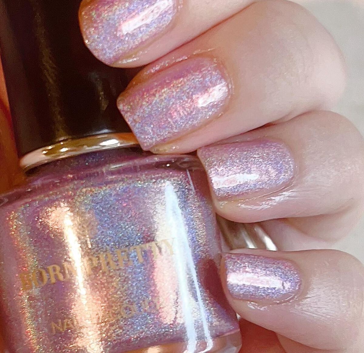 🟣BORNPRETTY🟣RainbowGlassCatMagneticGelRG02グレーの地に七色に光るラメ、ピンクのマグネット。ピンクのマグネットは角度により青っぽくも見える。ピンクのマグネットなしでこれに似たマネキュアを持っていて、お気...