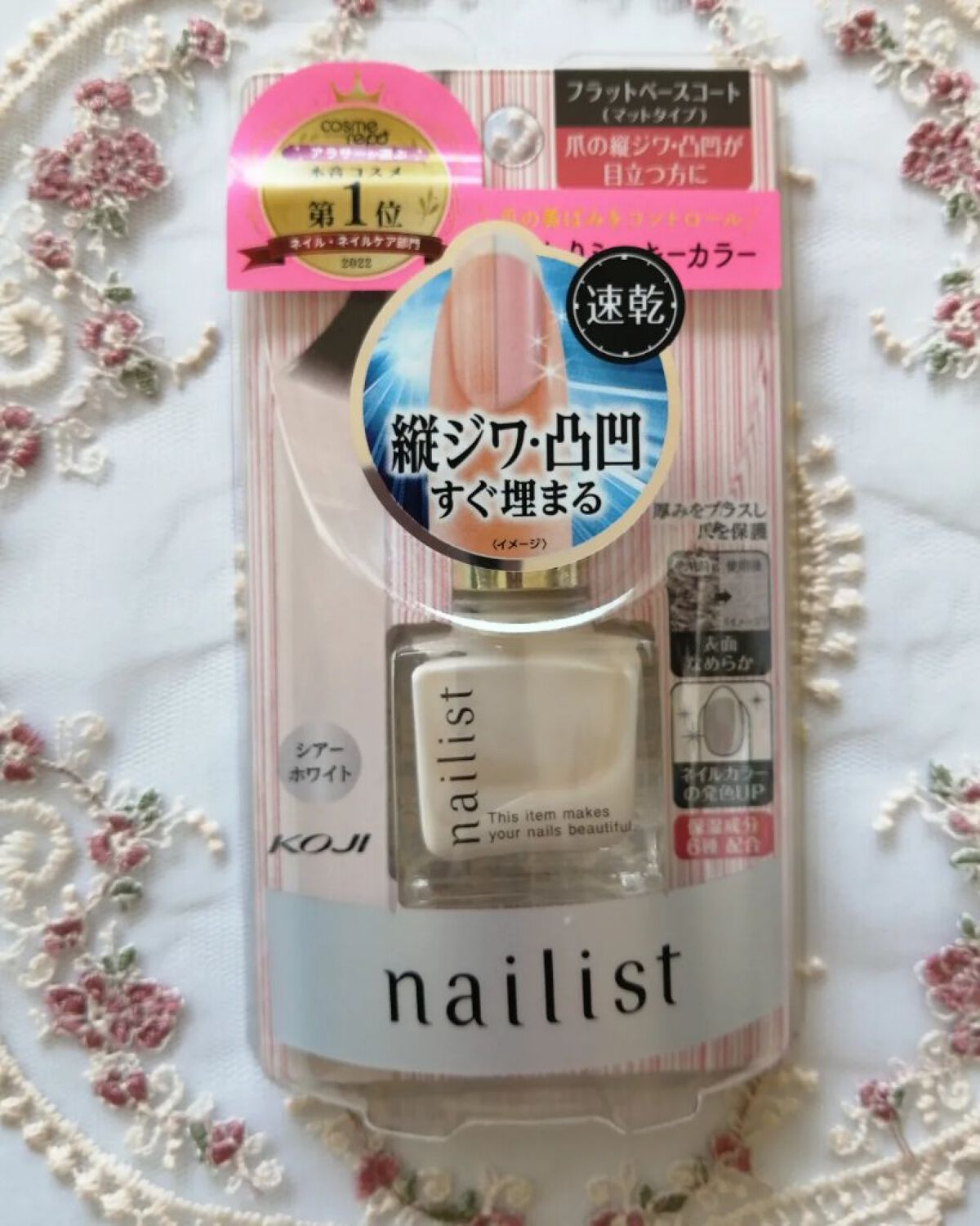 - 爪表面の縦ジワや凸凹を埋めてフラットにするベースコート。爪の色を整え、ネイルカラーの発色をよくするシアーホワイト。 〇速乾タイプ 〇保湿成分配合