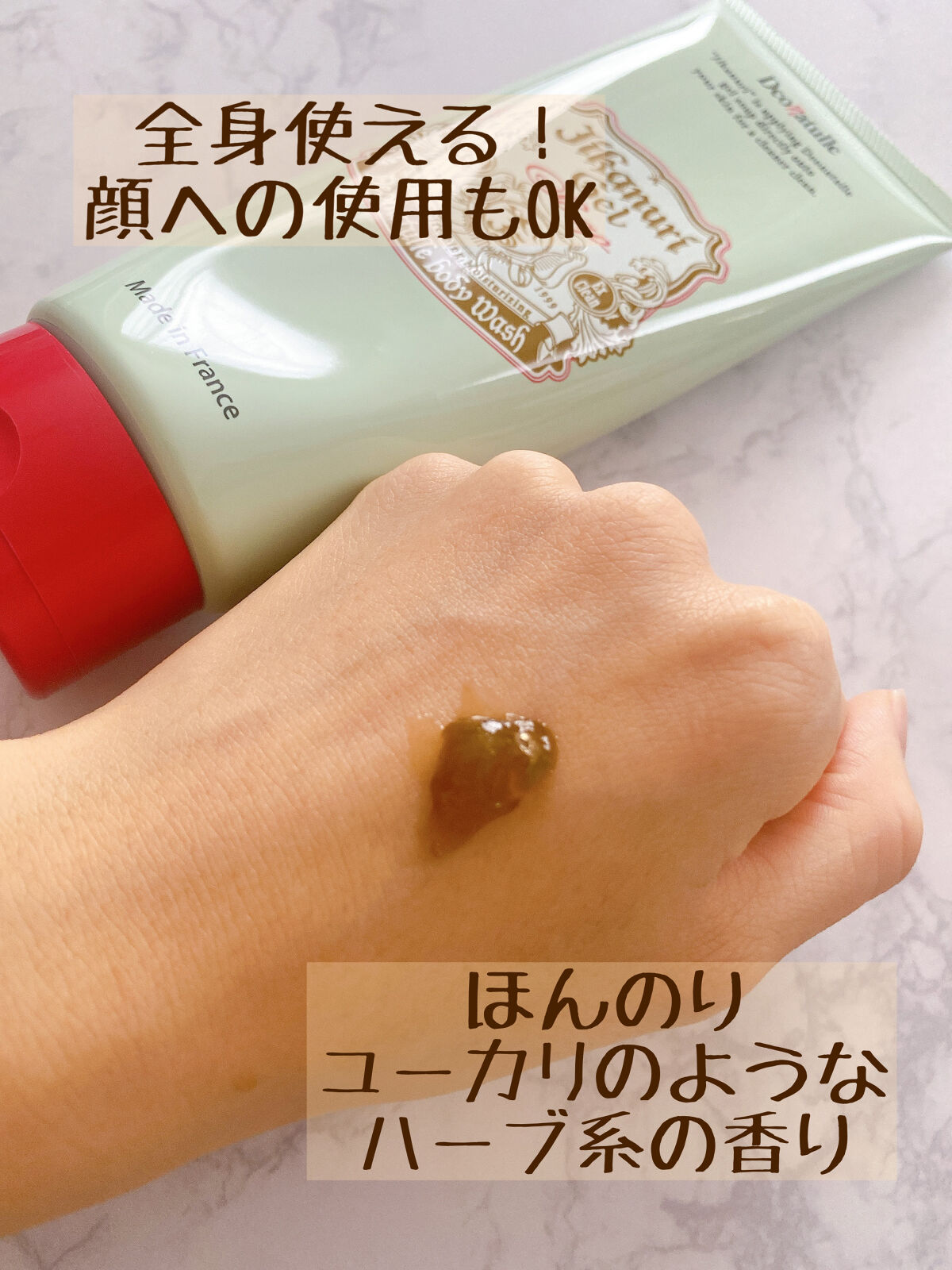 - \11年間ず~っと売上No.1*直ヌリ制汗デオドラントブランド/ 泡立てずに!オリーブのジェルの力で皮脂・ニオイまで**洗い落とす全身洗浄料「直ヌリジェル石けん」 ◆◆商品特長◆◆ 1.ニオイの原因となる酸化した皮脂汚れをすっきりと落としながら、うるおいは保つ 2.肌がキュキュッとする、新感覚のすっきりとした洗いあがり 3.主原料は天然オリーブオイル***で合成香料、着色料、防腐剤、無添加 オリーブとユーカリ由来の天然の色と香り 4.ミョウバン配合**** ◆◆こんな方へおすすめ◆◆ ・日ごろから制汗デオドラントを使っている人 ・いつも使っているボディソープでは汗やニオイがすっきり落とせていない気がする人 ・とにかく汗・ニオイをしっかり落としたいと思っている人 ==注意== ●お肌に合わないとき、傷、はれもの、湿疹等、異常のあるときは使用しない。●使用中、赤み、はれ、かゆみ、刺激等の異常があらわれたときは使用を中止し、皮フ科専門医等に相談する。そのまま使用を続けると症状が悪化する場合がある。●目に入らないよう注意し、万一目に入った場合は、すぐに洗い流す。異常が残る場合は眼科医に相談する。●使用後はキャップをしっかり閉め、直射日光のあたる場所、極端に高温、低温、または多湿の場所を避けて保管する。●乳幼児の手の届くところに置かない。 販売名:DNジェルソープa *インテージSRI+制汗剤市場 2013年5月~2024年4月 ソフトストーンW(販売名:デオナチュレソフトストーンEX(リニューアル前処方)・DN薬用スティックFe)累計販売金額 **ニオイの元となる皮脂を洗浄することによる ***基剤:オリーブ果実油 ****アルムK(収れん剤)