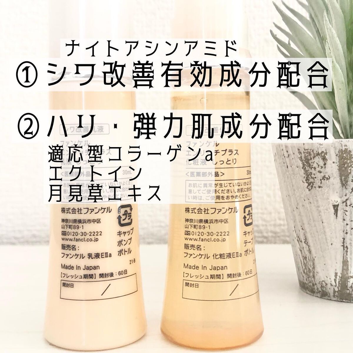 シワ改善有効成分*配合の薬用化粧液◇FANCL◇▶︎エンリッチプラス化粧液IIしっとり<医薬部外品>ふっくらハリに満ちた肌へ導いてくれるしっとりタイプの化粧液有効成分「ナイアシンアミド」が、真皮の線維芽細胞に働きかけコラーゲン産生を促進...