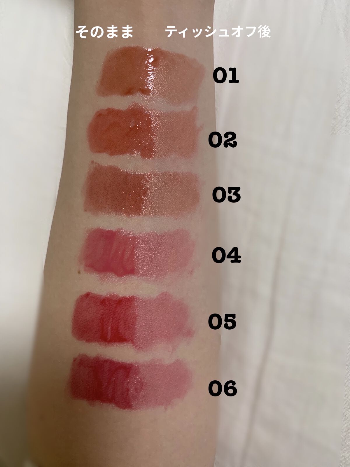 - <01 BEST BEIGE MENU(推し杏子ベージュ)> 水、ジフェニルジメチコン、リンゴ酸ジイソステアリル、ビスジグリセリルボリアシルアジペート-2、水添ポリイソブテン、ダイマー ジリノール酸ダイマージリノレイルビス(ベヘニル/イソステアリル/フィトステリル)、ジグリセリン、セチルPEG/PPG-10/1ジメチコン、DPG、水添ポリ (C6-14 オレフィン)、ポリソルベート60、イソステアリン酸ソルビタン、ダイマージリノール酸ジイソステアリン酸ポリ グリセリル-3、ペンチレングリコール、(アクリル酸ヒドロキシエチル/アクリロイルジメチルタウリンNa)コポリマー、トリ(カプリル酸/ カプリン酸)グリセリル、スクワラン、セテアレス-20、(エチレン/プロピレン)コポリマー、フェノキシエタノール、グリセリン、ポリグリ セリン-3、香料、エチルヘキシルグリセリン、ハマメリス葉エキス、オニユリエキス、BG、酸化チタン、黄5、赤227、赤104(1)、青1 <02 CORAL INFLUENCER(イエベ必須コーラル)> 水、ジフェニルジメチコン、リンゴ酸ジイソステアリル、ビスジグリセリルボリアシルアジペート-2、水添ポリイソブテン、ダイマー ジリノール酸ダイマージリノレイルビス(ベヘニル/イソステアリル/フィトステリル)、ジグリセリン、セチルPEG/PPG-10/1ジメチコン、DPG、水添ポリ (C6-14 オレフィン)、ポリソルベート60、イソステアリン酸ソルビタン、ダイマージリノール酸ジイソステアリン酸ポリ グリセリル-3、ペンチレングリコール、(アクリル酸ヒドロキシエチル/アクリロイルジメチルタウリンNa)コポリマー、トリ(カプリル酸/ カプリン酸)グリセリル、スクワラン、セテアレス-20、(エチレン/プロピレン)コポリマー、フェノキシエタノール、グリセリン、ポリグリ セリン-3、香料、エチルヘキシルグリセリン、ハマメリス葉エキス、オニユリエキス、BG、酸化チタン、黄5、赤227、赤104(1)、青1 <03 ROSE IN MIND(いいねローズ)> 水、ジフェニルジメチコン、リンゴ酸ジイソステアリル、ビスジグリセリルポリアシルアジペート-2、水添ポリイソブテン、ダイマージリノール酸ダイマージリノレイルビス(ベヘニル/イソステアリル/フィトステリル)、ジグリセリン、DPG、セチルPEG/PPG-10/1ジメチコン、水添ポリデセン、ポリソルベート60、イソステアリン酸ソルビタン、ダイマージリノール酸ジイソステアリン酸ポリグリセリル-3、ペンチレングリコール、(アクリル酸ヒドロキシエチル/アクリロイルジメチルタウリンNa)コポリマー、トリ(カプリル酸/カプリン酸)グリセリル、スクワラン、セテアレス-20、(エチレン/プロピレン)コポリマー、フェノキシエタノール、グリセリン、香料、エチルヘキシルグリセリン、ハマメリス葉エキス、オニユリエキス、BG、テトラ(ジ-t-ブチルヒドロキシヒドロケイヒ酸)ペンタエリスリチル、酸化チタン、黄5、赤104(1)、赤227、青1 <04 PINK YOUTH(ベイビー天使)> 水、ジフェニルジメチコン、リンゴ酸ジイソステアリル、ビスジグリセリルボリアシルアジペート-2、水添ポリイソブテン、ダイマー ジリノール酸ダイマージリノレイルビス(ベヘニル/イソステアリル/フィトステリル)、ジグリセリン、セチルPEG/PPG-10/1ジメチコン、DPG、水添ポリ (C6-14オレフィン)、ポリソルベート60、イソステアリン酸ソルビタン、ダイマージリノール酸ジイソステアリン酸ポリ グリセリル-3、ペンチレングリコール、(アクリル酸ヒドロキシエチル/アクリロイルジメチルタウリンNa)コポリマー、トリ(カプリル酸/ カプリン酸)グリセリル、スクワラン、セテアレス-20、(エチレン/プロピレン)コポリマー、フェノキシエタノール、ポリグリセリン-3、香料、エチルヘキシルグリセリン、グリセリン、水酸化Al、ポリアクリル酸アンモニウム、BG、ハマメリス葉エキス、オニユリエキス、酸化チタン、赤227、黄4、赤104 (1) 黄5、青1 <05 CHERRY SO WHAT(どうしたのチェリー)> 水、ジフェニルジメチコン、リンゴ酸ジイソステアリル、ビスジグリセリルポリアシルアジペート-2、水添ポリイソブテン、ダイマージリノール酸ダイマージリノレイルビス(ベヘニル/イソステアリル/フィトステリル)、ジグリセリン、セチルPEG/PPG-10/1ジメチコン、DPG、水添ポリ(C6-14オレフィン)、ポリソルベート60、イソステアリン酸ソルビタン、ダイマージリノール酸ジイソステアリン酸ポリグリセリル-3、ペンチレングリコール、(アクリル酸ヒドロキシエチル/アクリロイルジメチルタウリンNa)コポリマー、トリ(カプリル酸/カプリン酸)グリセリル、スクワラン、セテアレス-20、(エチレン/プロピレン)コポリマー、フェノキシエタノール、ポリグリセリン-3、香料、エチルヘキシルグリセリン、グリセリン、ハマメリス葉エキス、オニユリエキス、BG、赤227、黄4、赤104(1)、黄5、青1 <06 PLUM UPDATE(プロフ写プラム)> 水、ジフェニルジメチコン、リンゴ酸ジイソステアリル、ビスジグリセリルポリアシルアジペート-2、水添ポリイソブテン、ダイマー ジリノール酸ダイマージリノレイルビス(ベヘニル/イソステアリル/フィトステリル)、