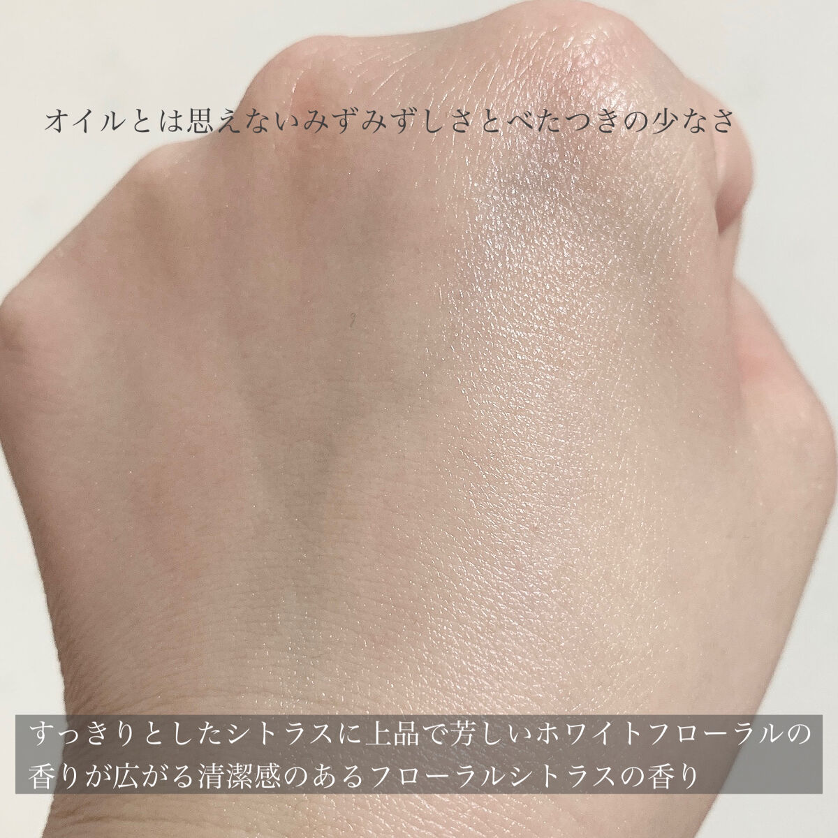 - 数量限定 一滴一滴が、自分らしさになっていく。 うるおいと自然なつやを実感できる、新発想・新感覚のオイル状美容液。 ○顔・からだ・髪の乾燥が気になる時、つやが欲しい時に、使う順序も使い方も思いのまま、自由にご使用いただけます。 ○6 つのオイル(ホホバオイル、スクワラン、アルガンオイル、ツバキオイル、ブドウ種子オイル、米胚芽オイル)配合で、みずみずしいうるおいと自然なつやを実感できます。※ ※つや付与効果、エモリエント効果、保護効果 ○まるで水のようにみずみずしく、肌や髪になじむ新感覚のテクスチャーのオイルです。 ○天然精油配合、清潔感のあるフローラルシトラスの香りです。 ○サステナビリティに配慮した植物由来成分とパッケージを使用しています。