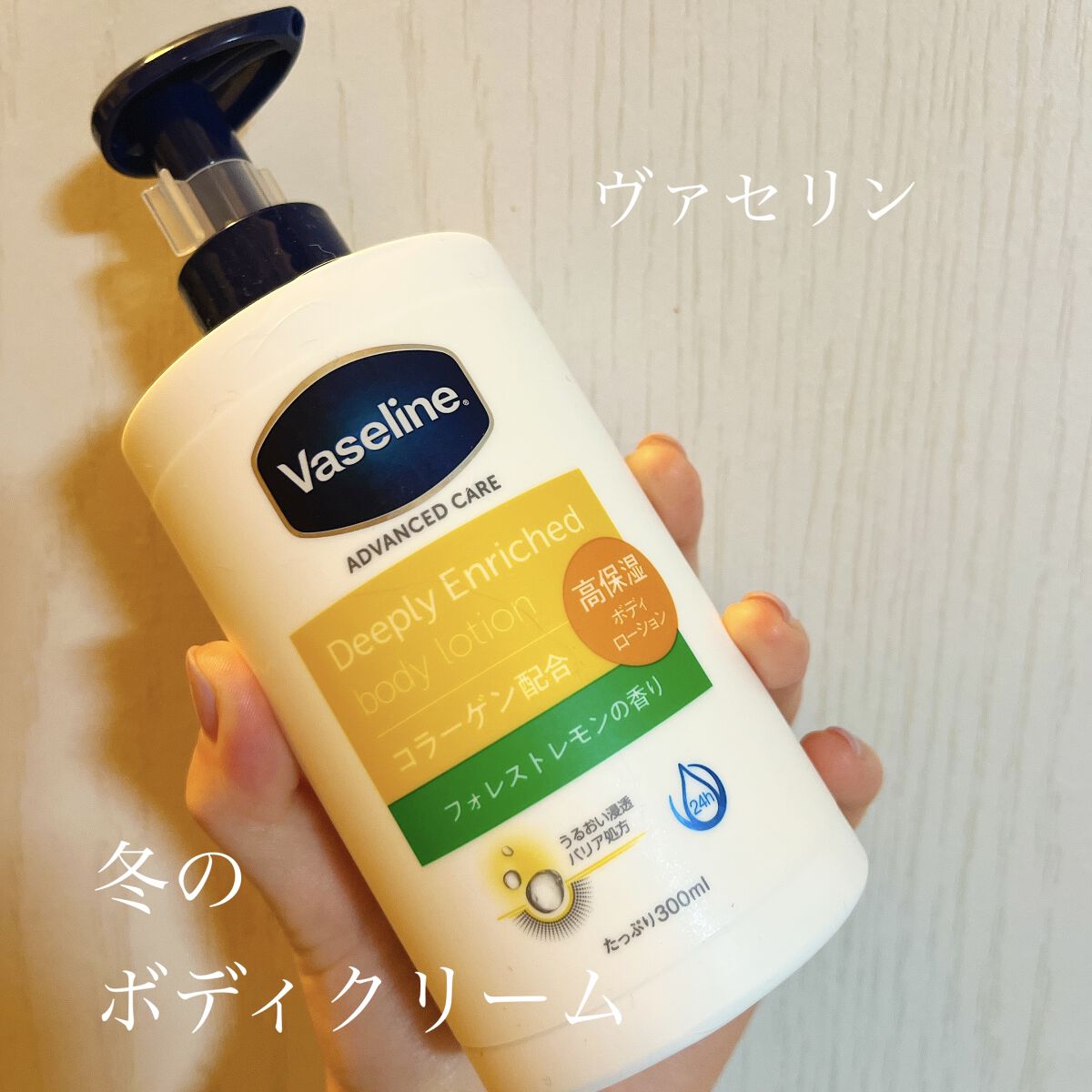 - ヴァセリンジェリー*1高配合の高保湿ボディローションで、うるすべ肌が一日*2続きます。 ・コラーゲン*3に加え、カレンデュラエッセンス、オーガニックホホバオイル、オーガニックシアバターの3種の天然保湿成分を配合。 ・レモンエッセンシャルオイル*4を配合した、ふんわり優しく爽やかに香ってリフレッシュできるフォレストレモンの香り ・スーッと肌*5に浸透してベタつかないのに、肌にしっかりうるおいを与えます。 *1: ワセリン:うるおい成分 *2: ユニリーバ・ジャパン調べ *3: うるおい成分 *4: 香り成分 *5: 角質層まで