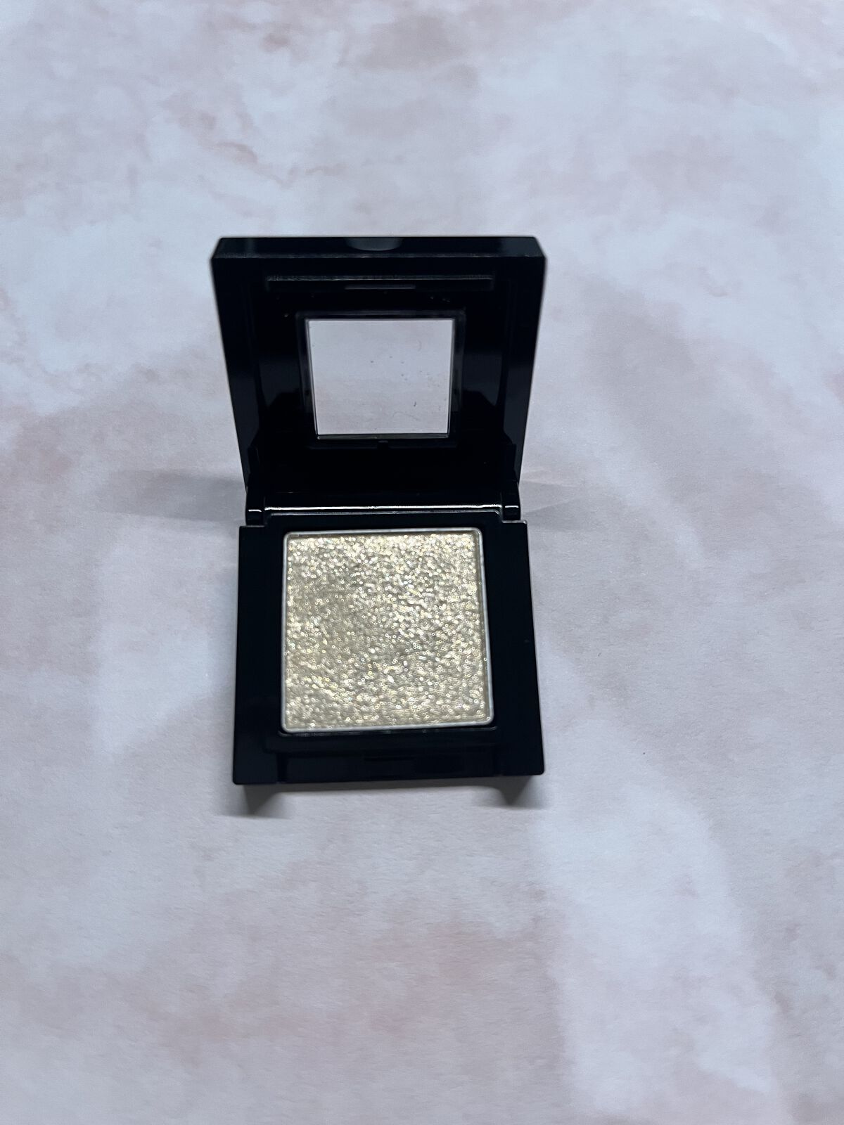 透け感のあるシマーなグレーアイシャドウ。まろやか。黒ごまミルクに少し紅茶足したみたいな色?色味はとってもかわいい。 透け感が可愛かった〜。 最初は瞼に使ってたけどなんかくすむ?よれる?気がして、試しにアイブロウとして使ってみたらぴったり。 最後までケースがしっかり使えたのが嬉しかった。 とってもいい音で締まるんよ。すき。ありがとうございました!