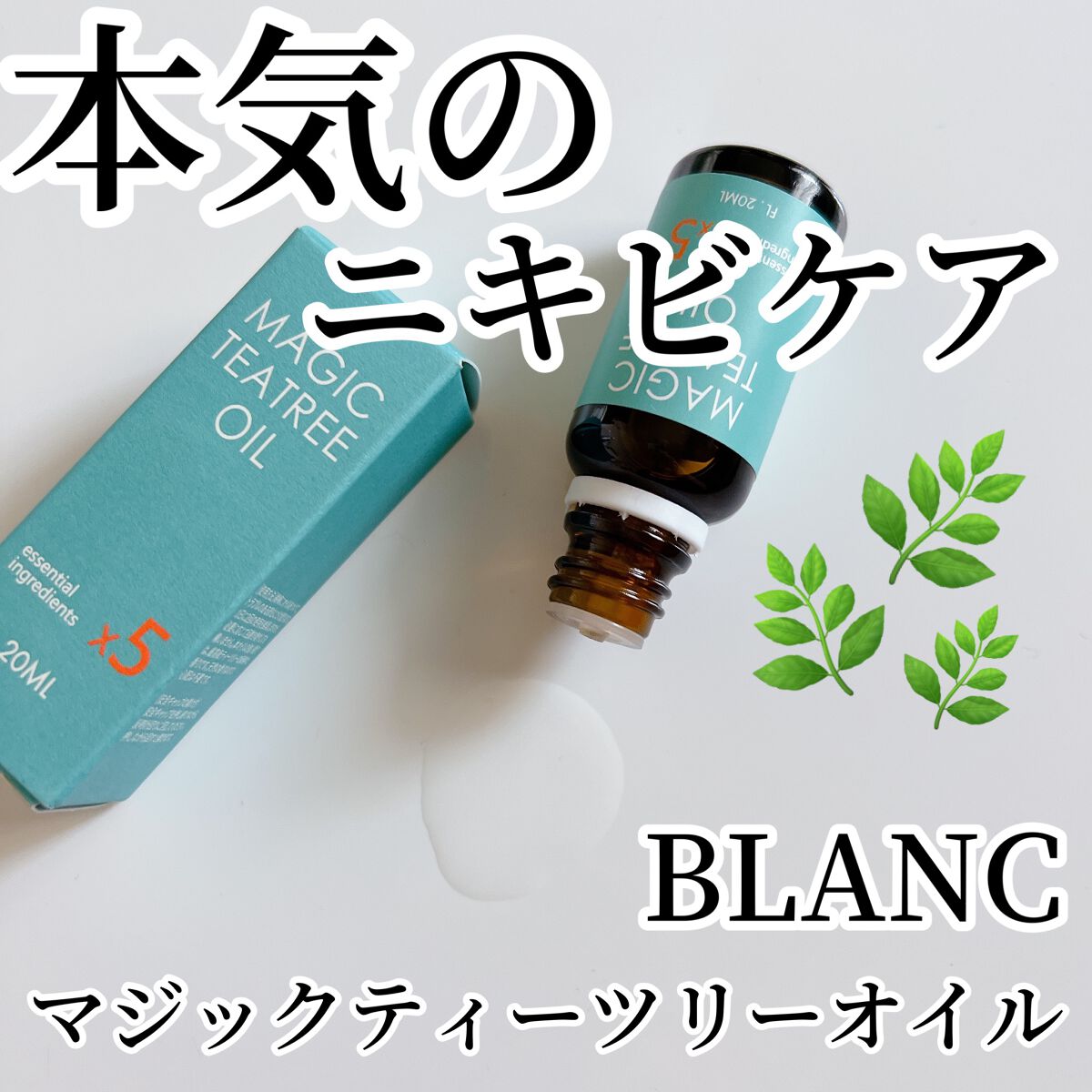 BLANCブランマジックティーツリーオイル肌トラブルをすばやく落ち着かせてくれるマジックティーツリーオイルです🫶薬用っぽいすーっとした爽やかな香りで、かなりさらっとしたテクスチャー🌿スキンケアの最後に綿棒にオイルをつけて、気になる部分(ニキビ...