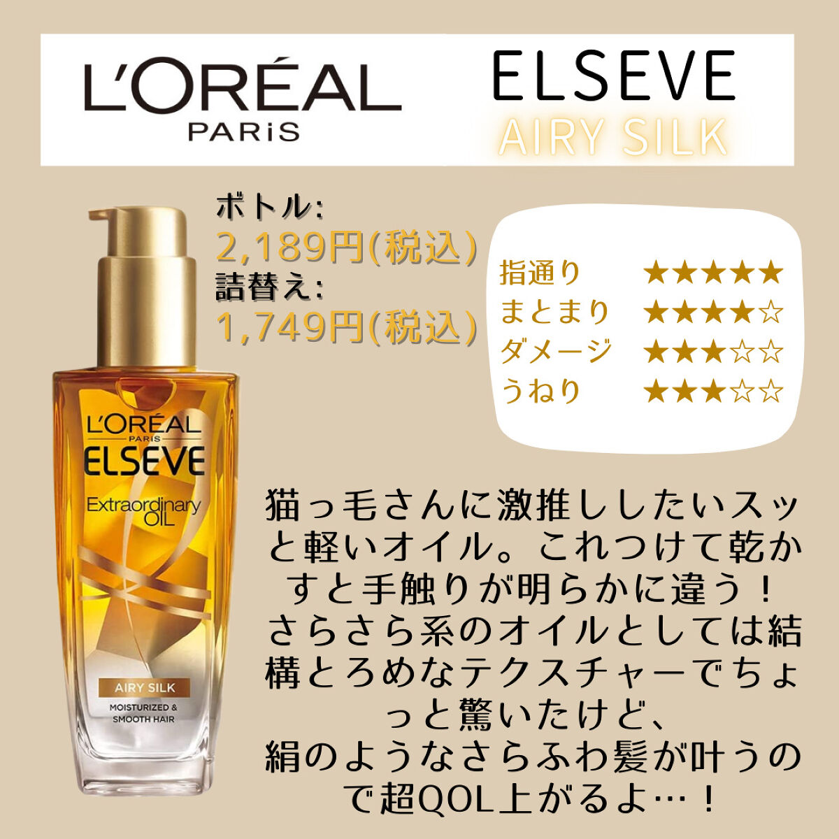 ロレアル パリ ロレアル パリ エクストラオーディナリー オイル エアリー シルク | 2,189円 |