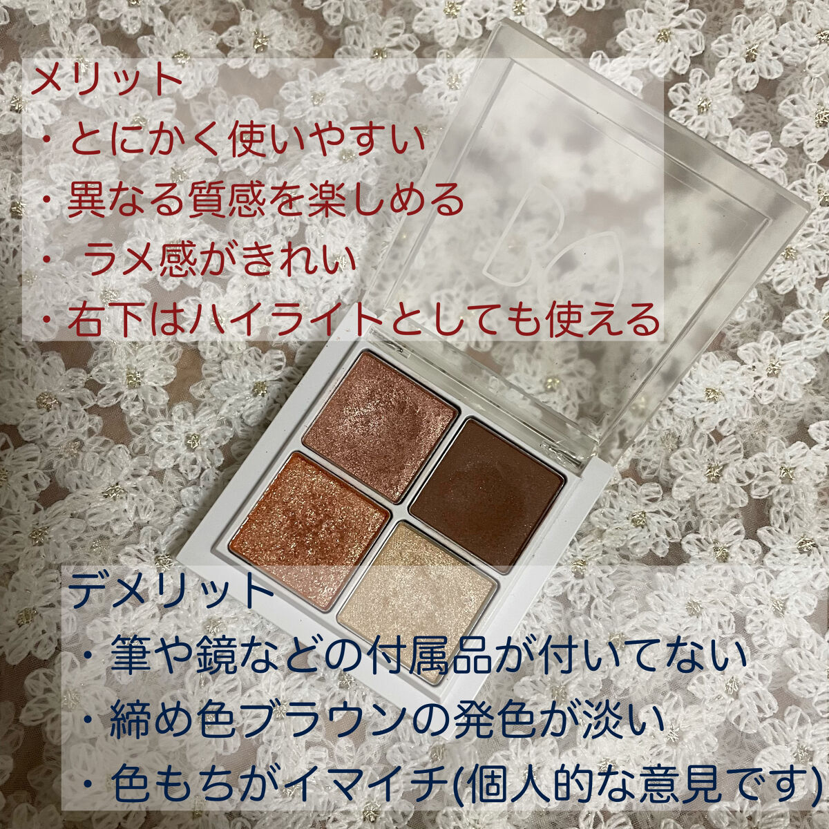 | アイシャドウパレットランキング第5位 | 粉質もパサパサしていないしっとりさらさらの粉質で、ベターザンアイズを持っている方なら想像のつくあのサラサラ感です | 詳細を見る | |