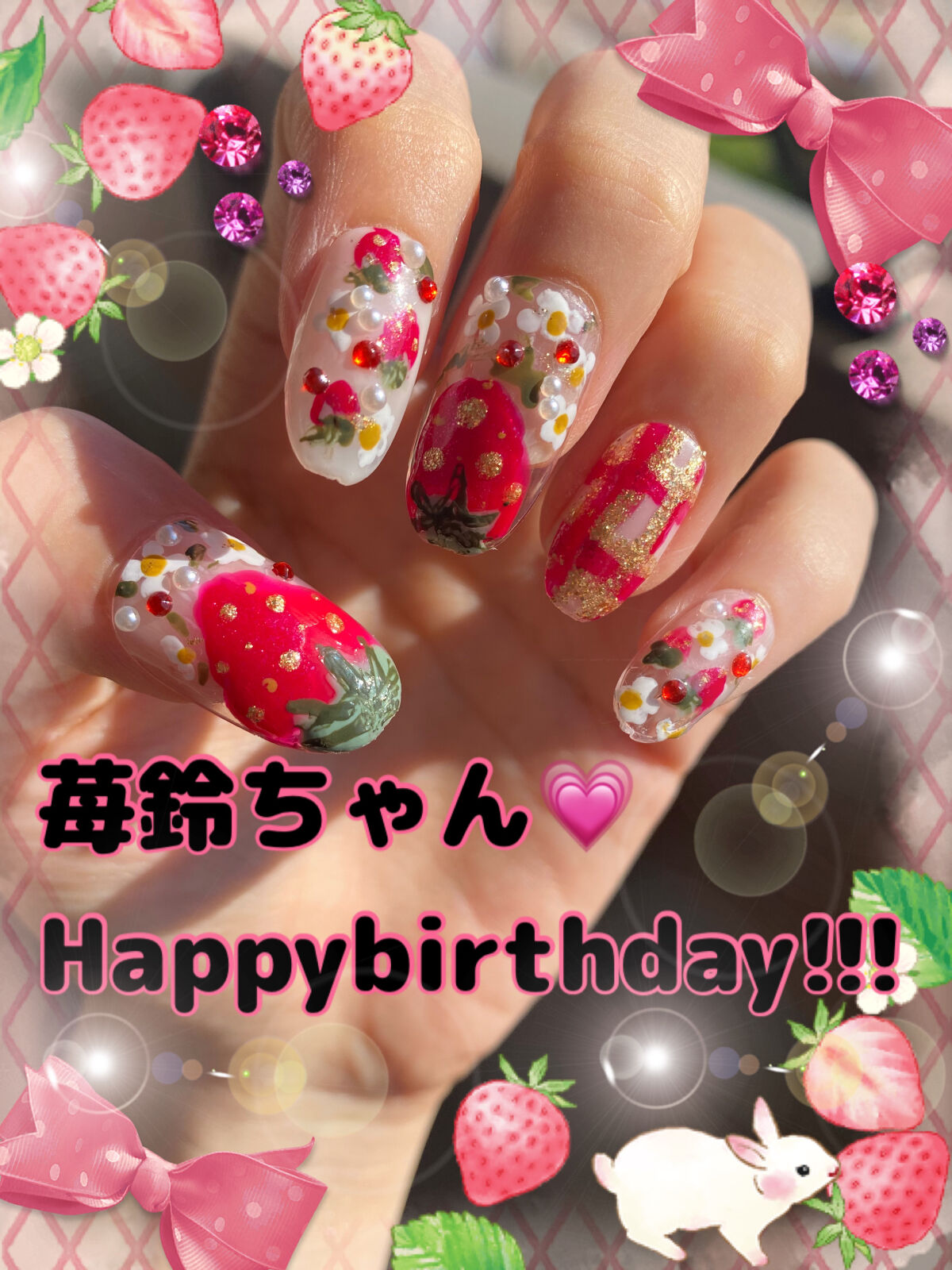 苺鈴サンお誕生日おめでとうございます🎉🎊💐👏❤ ぷぅぴぃサンのネイルが上手すぎて、プロみたい🥹🧡