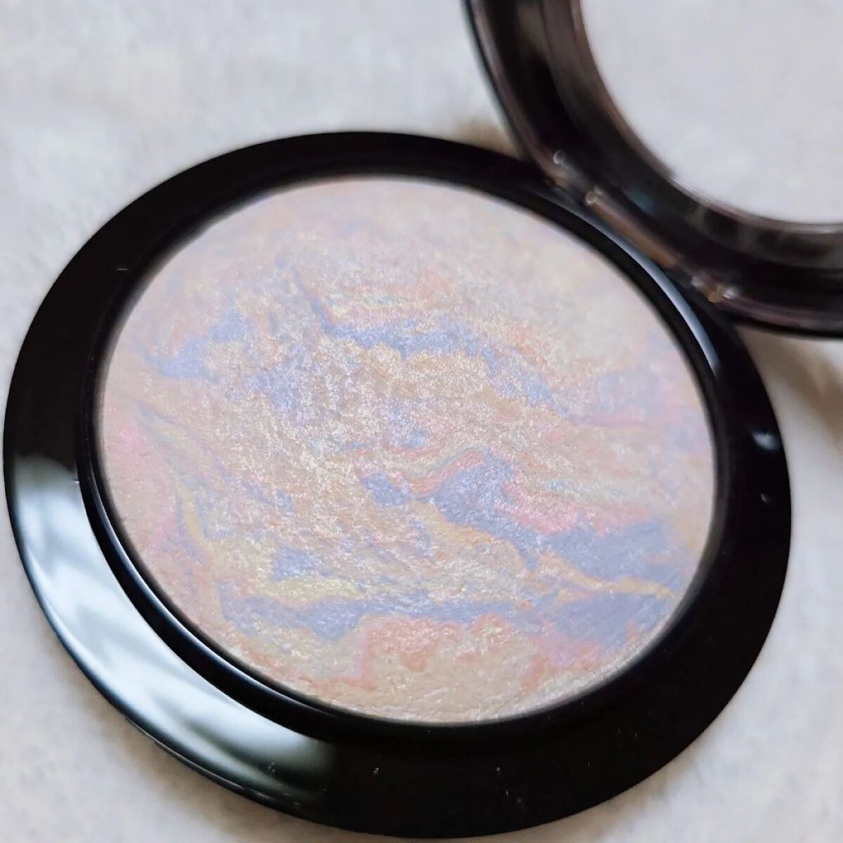 私の溺愛しているフェイスパウダー。 4個目。 ツヤが出すぎない自然なハイライト効果。 色んなフェイスパウダーを使ってきたけど、なんだかんだこれが1番合っていて肌に溶け込む。 イエロー系、ピンク系、オレンジ系のマーブルの中に、ブルー系のパウダーも入っているから透明感も出る。