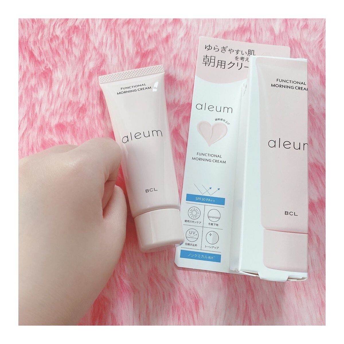 朝のお手入れで1日の素肌を美しく守り抜いてくれるそうです。 朝用スキンケア、化粧下地、メイク効果によるくすみ肌のトーンアップ、UVケア(SPF30 PA++)の4in1マルチ機能のクリームらしいです! 忙しい朝にはとても助かるアイテムですね☺️ ウォータリーロータスの香りで朝から可愛らしい優しい気持ちになれます。 パッケージはとても可愛いピンク色で見てるだけでうっとりです。 クリームはうすピンク色。少量でも伸びがよく、柔らかいしっとりとしたテクスチャでした。 朝に雑に塗ってしまいがちなので塗りやすいテクスチャは正直嬉しいです。 かといってべたつく感じはしなかったので私は使いやすいように感じました。