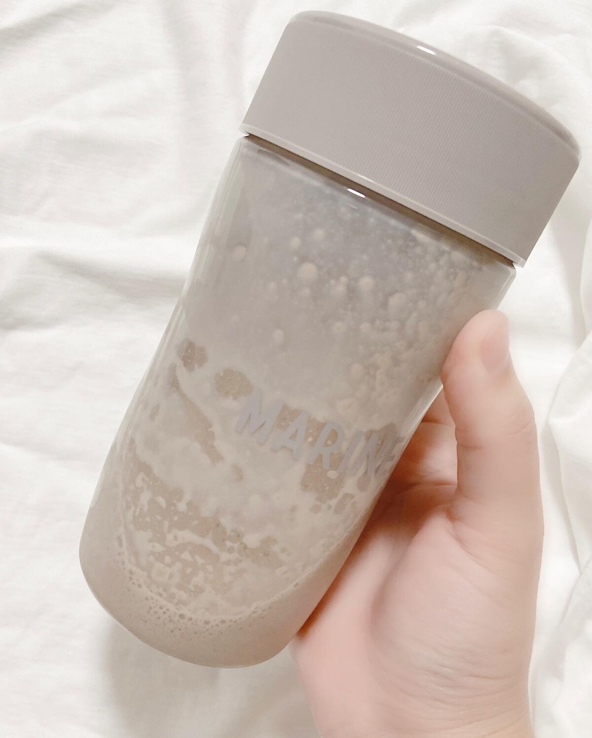 marinessマリネスプロテインリッチチョコレート〜コレが1番好き❤️水で割っても美味しいし粉っぽくない〜豆乳で割ったらチョコラテみたいな感じ〜朝はプロテイン生活始めますしかもこのプロテイン、一袋に一個スプーン付き乳酸菌配合だから少し便通も...