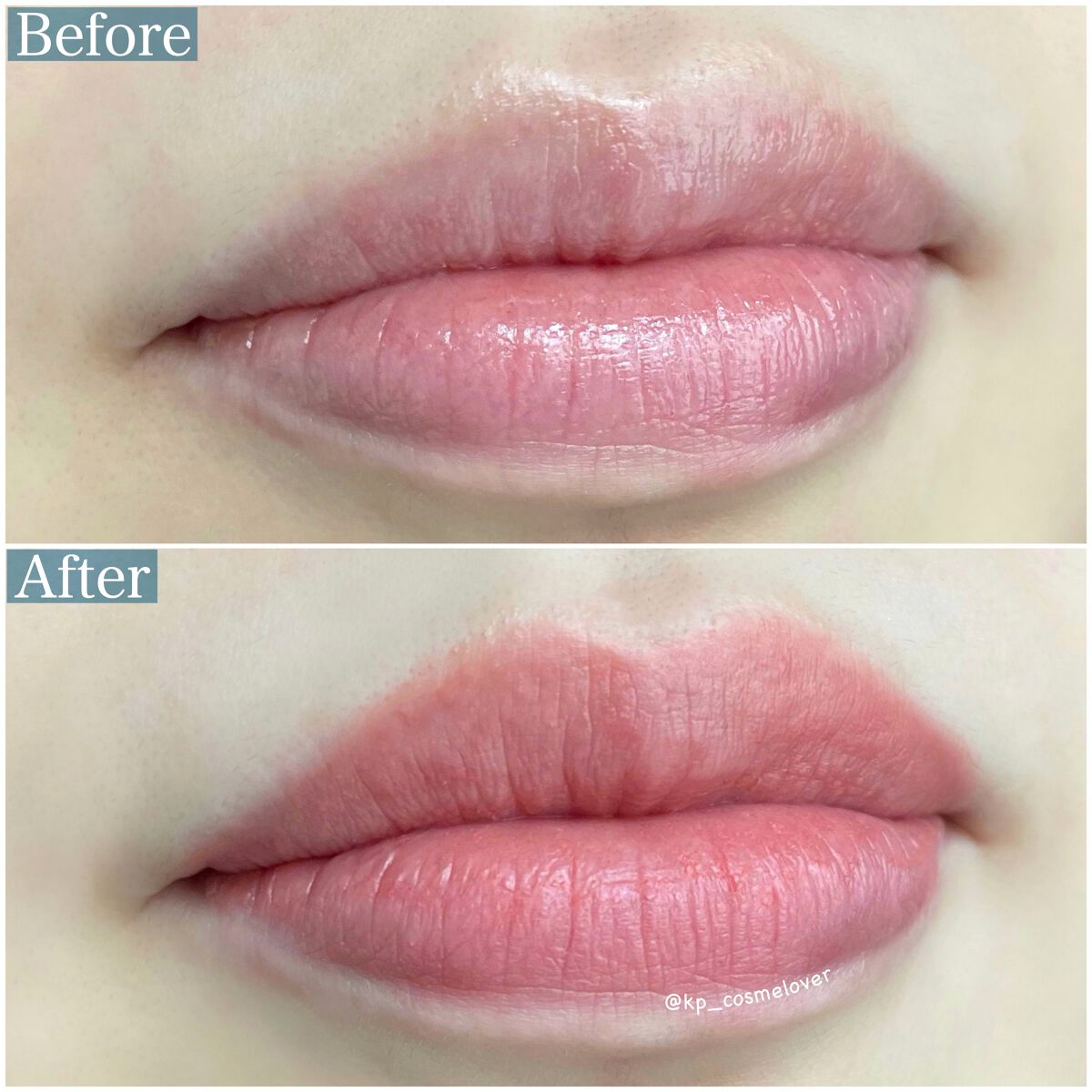 保湿力が高く、最近唇が荒れやすい私でも問題なく使えました❣️ シアーな発色で、リップクリーム感覚でぐりぐりと塗っていますが、色味と艶感が絶妙🤤 ティッシュオフしなくてもマスクにつきにくく、色持ちもすごく良いです💋 今まで買わなかったことに後悔しかないです😫 次はどの色を買おうか、今からワクワクしています💕
