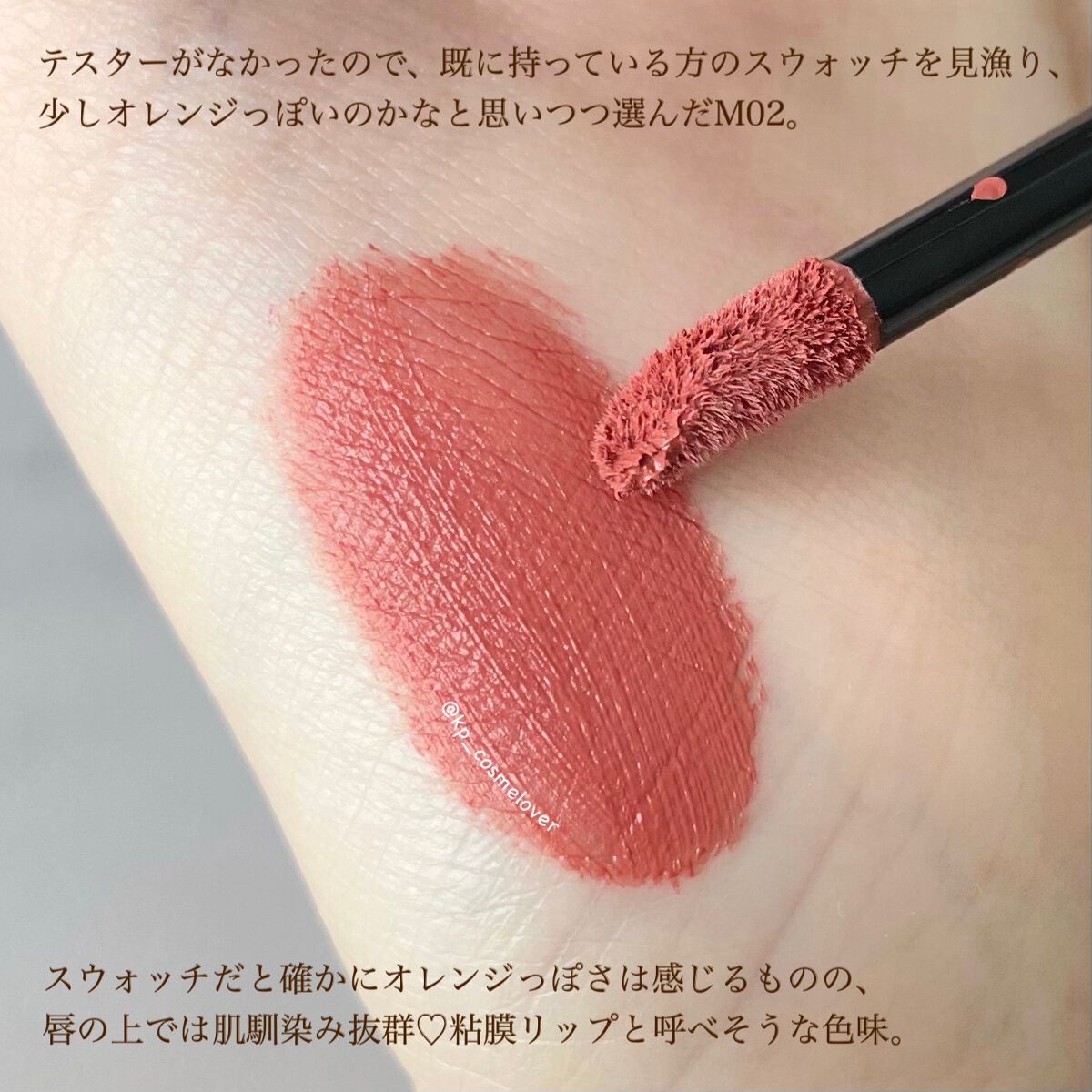 - つけたての色が長時間持続 ふんわりマット質感に変化 落ちにくい液状リップ ■高発色スフレ処方:唇から蒸発する水分を活用してしっとりジェル膜へ変化 液状リップの油分が揮発してふんわりマット質感に変化 ■リップモンスターの機能を踏襲 つけたそのままの色が長時間持続 マスクをしても色落ちしにくい 飲み物を飲んでもカップにつきにくい