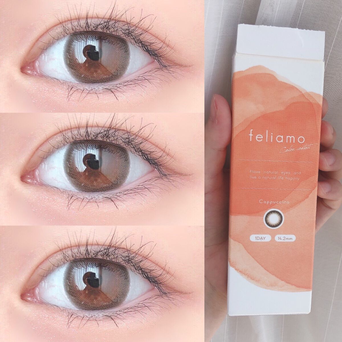- ※2025年6月以降、商品パッケージ裏面・側面の一部表記を順次変更いたします。尚、これにかかる商品の交換・返品は承っておりません。 どんな瞬間にも溶け込む誰からも愛される瞳へ feliamoの由来は felice amore~幸せな愛~ 瞳から愛されオーラを放つ好印象レンズで女性らしさと品を演出。 オンも、オフも、特別な日も。 どんな場面にも溶け込むレンズラインナップで誰からも愛される瞳に。 UV CUT Feature1 肌や瞳に有害といわれ、白内障などの眼病を引き起こす危険性のある紫外線を99%カットします。(UV-A波75%、UV-B波99%カット) イオン性 Feature1 水分を多く含み酸素を通しやすいため瞳にやさしい使い心地で、快適な装用感です。 高含水 Feature1 水分が多く含むやわらかい素材で、快適なつけ心地です。 レンズ構造 Feature1 まぶた側に着色剤を内包しているため、角膜に色素が触れることがない構造を採用しています。 レンズ形状 Feature1 フチを丸みのある形状にすることで自然な装用感を実現しました。 ※装用感には個人差があります。 カラーコンタクトレンズの不適正使用による眼障害の危険性等などがあります。 ●コンタクトレンズは高度管理医療機器です。不十分な洗浄・消毒など不適切なケアや、長時間・交換期間を超えた装用により、アレルギー性結膜炎、角膜感染症、角膜潰瘍等の重篤な眼障害が発生する危険性があります ●ご使用前に取扱説明書を確認してください 使用上の留意事項 ●眼科医院等を受診してからお求めください ●眼に異常を感じたら直ちにレンズ使用を中止し、お近くの眼科等で診察を受けてください ●医師の指示にしたがってご使用ください ●コンタクトレンズを装用する場合、自覚症状がなくても、眼科医院等での定期検査を受けてください ●レンズに不具合がある場合は使用しないでください