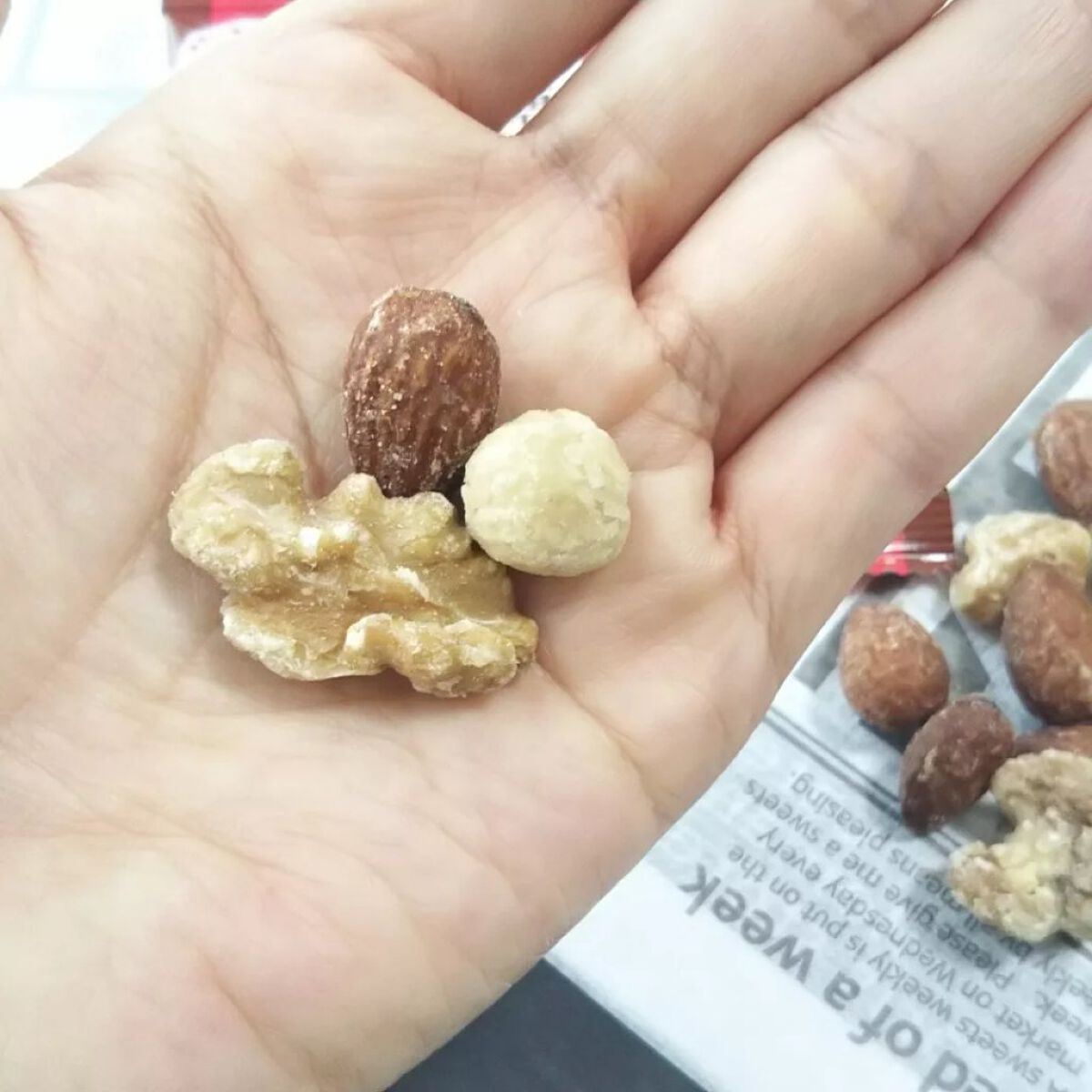 アーモンド、クルミ、ヘーゼルナッツの3種のナッツが入っていて甘くて美味しい❣️ 個包装になっているので小腹が空いた時にさっと食べれていいです◎ なにより低糖質なのが嬉しい♪♪