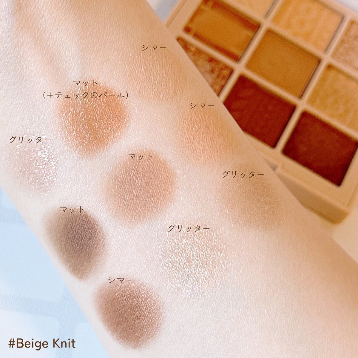 ふんわりベージュニットトーンにパール、チェックパターンを加えたウォームニットパレット🧶🎨 粉飛びもしにくく、グリッターも密着力抜群❤️🔥 ラメもキラッキラで最強に可愛い🐰 これ一つあれば思い通りのブラウンアイメイクができます☺︎ ぜひチェックしてみてね💫