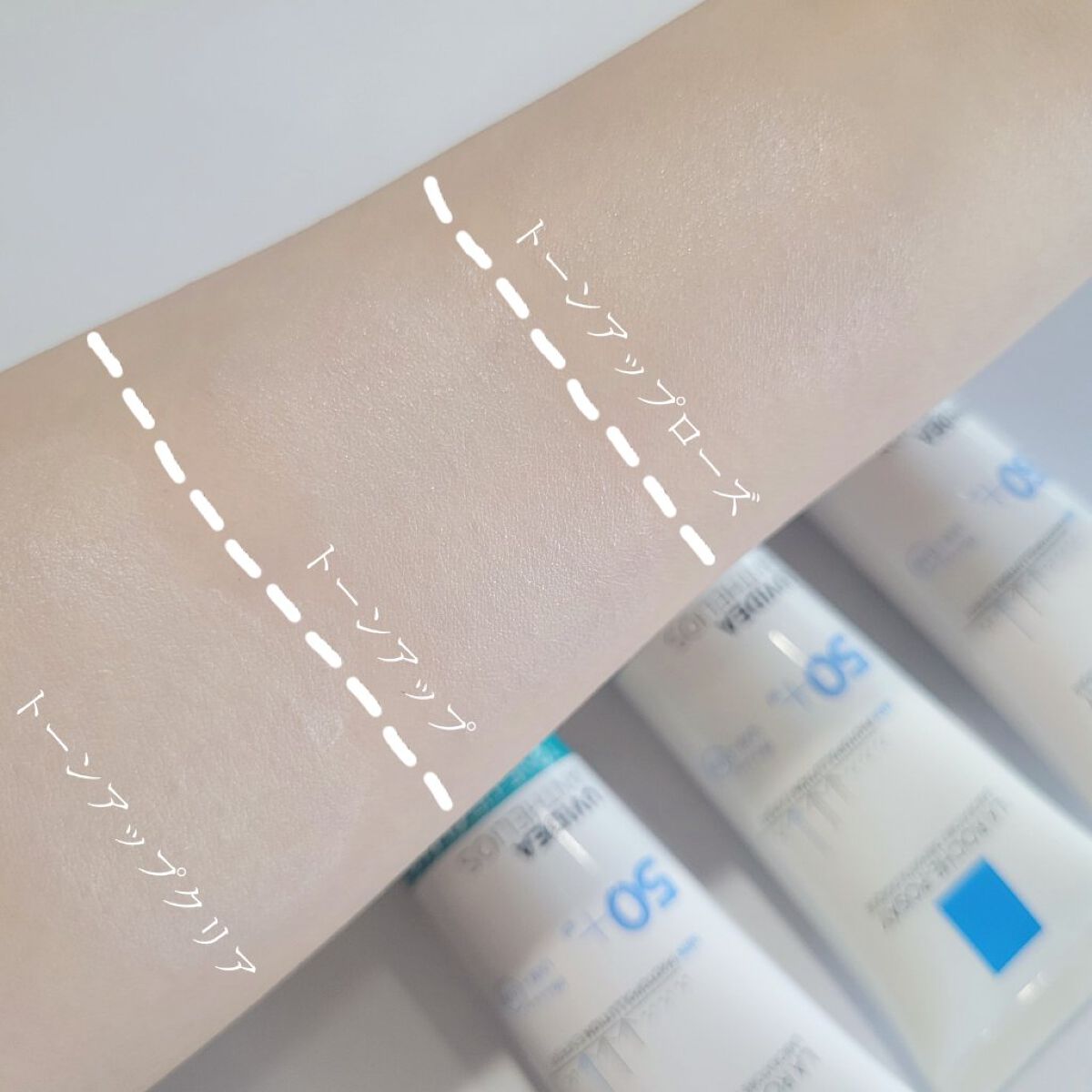 保湿力高めの下地が大好きなのでラロッシュポゼの下地はお気に入りでよく使います✨ かなりトーンアップします🤍自分は肌が黄ぐすみしやすいのでこれくらいトーンアップしてくれた方が時間がたった時にちょうどよくなります✨ 1番のお気に入りはローズです🌹肌から浮かない程よいトーンアップとほんのり血色感がよくなる所が大好きです🥰