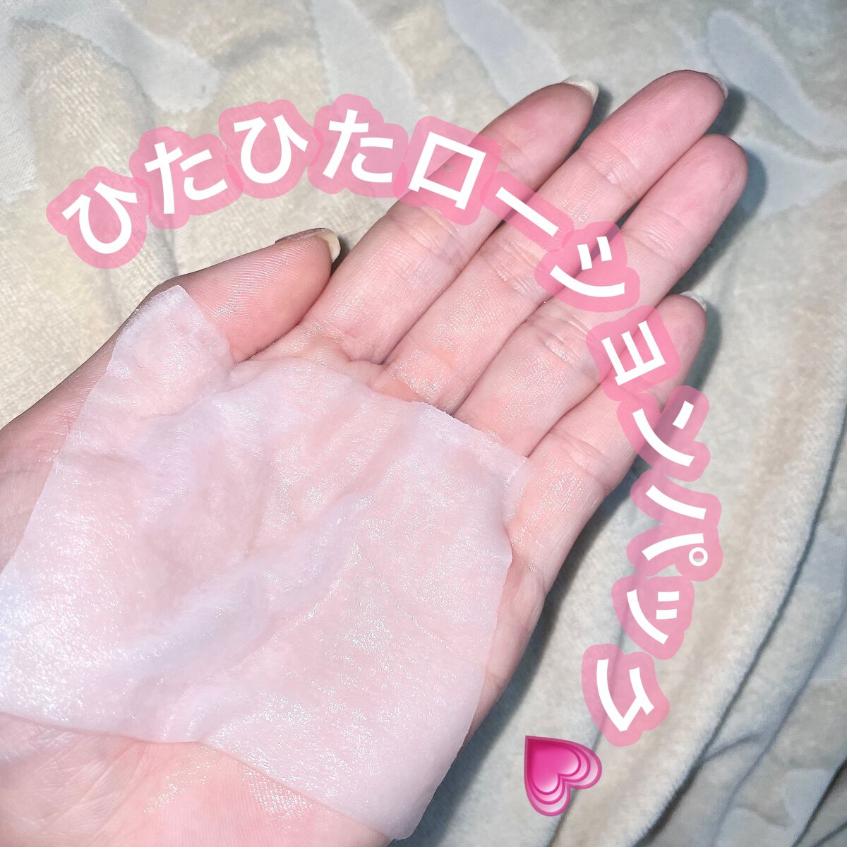 ひたひたの液&分厚めのシートで長めにケアできて満足感◎ 目のところが閉じれる仕様なので両目を閉じてしっかりリラックスケアor片目ずつ閉じて作業しながらのケアもOK(まさにこの文章を打ちながらも片目ケアして片目開いてます★笑) したたり落ちてくるほどの液を含有しているため垂れてきた液で首やデコルテ、肩や胸元、更に手に余った分で膝までちゃっかりケア! 潤いを足されている〜と感じることができるひんやり感でお風呂上がりのお肌のクールダウンにもオススメ♪ 7枚入りなのもちょっとしたお試しや旅先に持って行くにも程よい感じ★開け口がぴたっと閉められるので安心♪ 最近ケア怠りがちだった肌に癒しをプレゼントできた感じでした。5〜10分使用目安だそうなので、しっかり10分使おうと思います♪