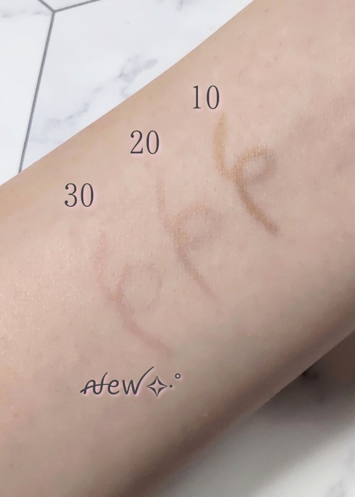 - <10 影用ブラウン> 水、BG、アクリレーツコポリマー、ペンチレングリコール、スルホコハク酸ジエチルヘキシルNa、エタノール、カミツレ花エキス、(+/-)黄4、赤227、青1 <20 影用グレージュ> 水、BG、アクリレーツコポリマー、ペンチレングリコール、スルホコハク酸ジエチルヘキシルNa、エタノール、カミツレ花エキス、(+/-)黄4、赤227、青1 <30 影用ピンク> 水、BG、アクリレーツコポリマー、ペンチレングリコール、スルホコハク酸ジエチルヘキシルNa、エタノール、カミツレ花エキス、(+/-)赤227、黄4、青1