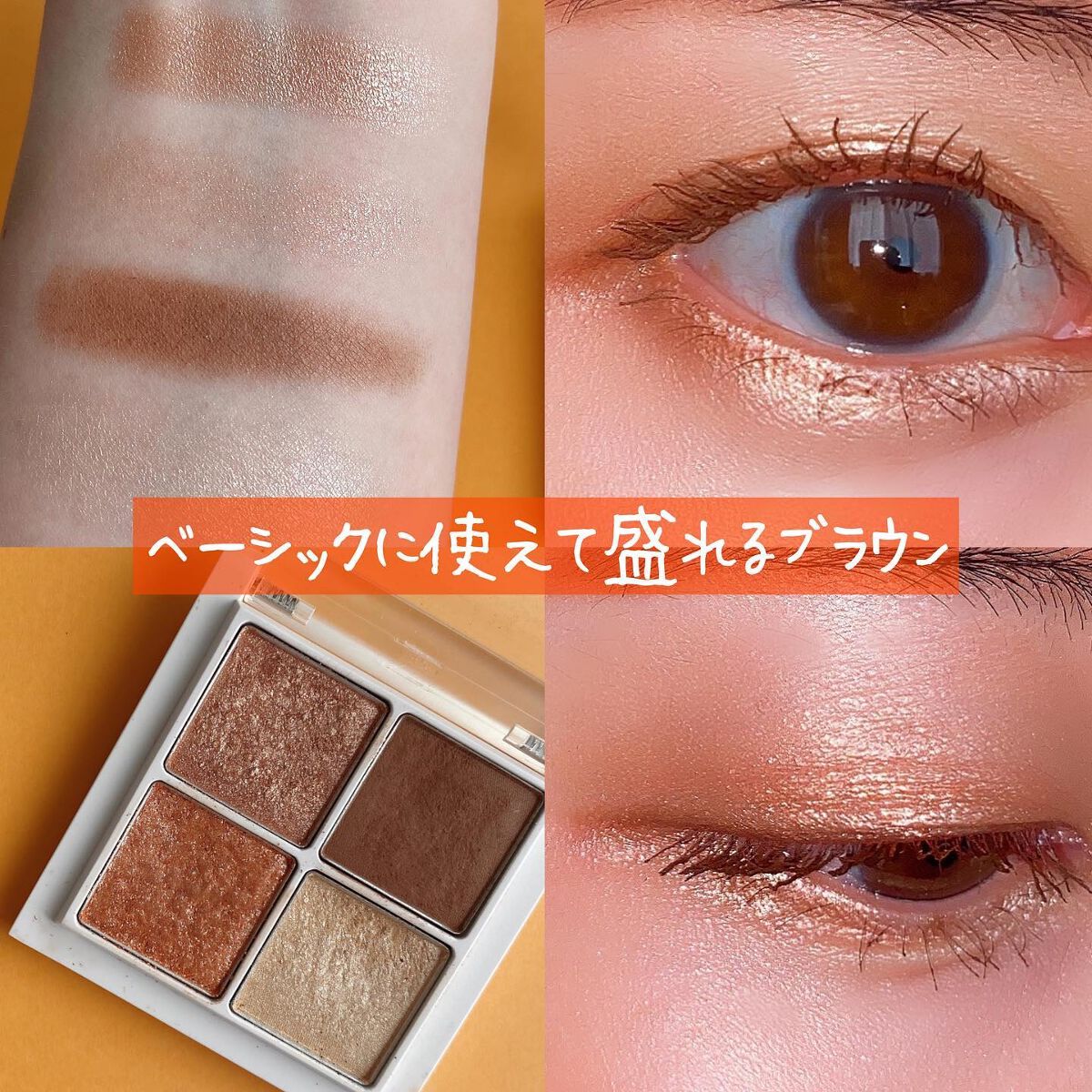 - 魔法の4色で印象的な目元に。 きらめきシャドウ×ハイライター あらゆるアイシャドウパレットを試してきた吉田朱里がたどり着いたのは“カラー3色+ハイライト”の4色パレット。 質感の異なるきらめきパウダーと、こだわりの配色で視線をひきつける印象的な目元へ。 立体感をつくるツヤ増しハイライター入り。 細部まで計算されたベストパレットで、一気にアイドル級の目力を演出します。 ※チップ・鏡はついておりません。 ※2023/3/31 リニューアル
