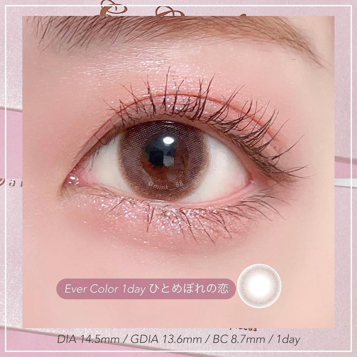 ほんのりピンクにブラウンのフチ デザインもナチュラルでふんわり盛れる🤍 くすみピンクと大きめのグラフィックで ガーリーな雰囲気に🎀 くすんだアッシュ系で垢抜けた瞳に♡ 透明感のある儚げなピンク♡ ピンク初心者さんにもおすすめ!