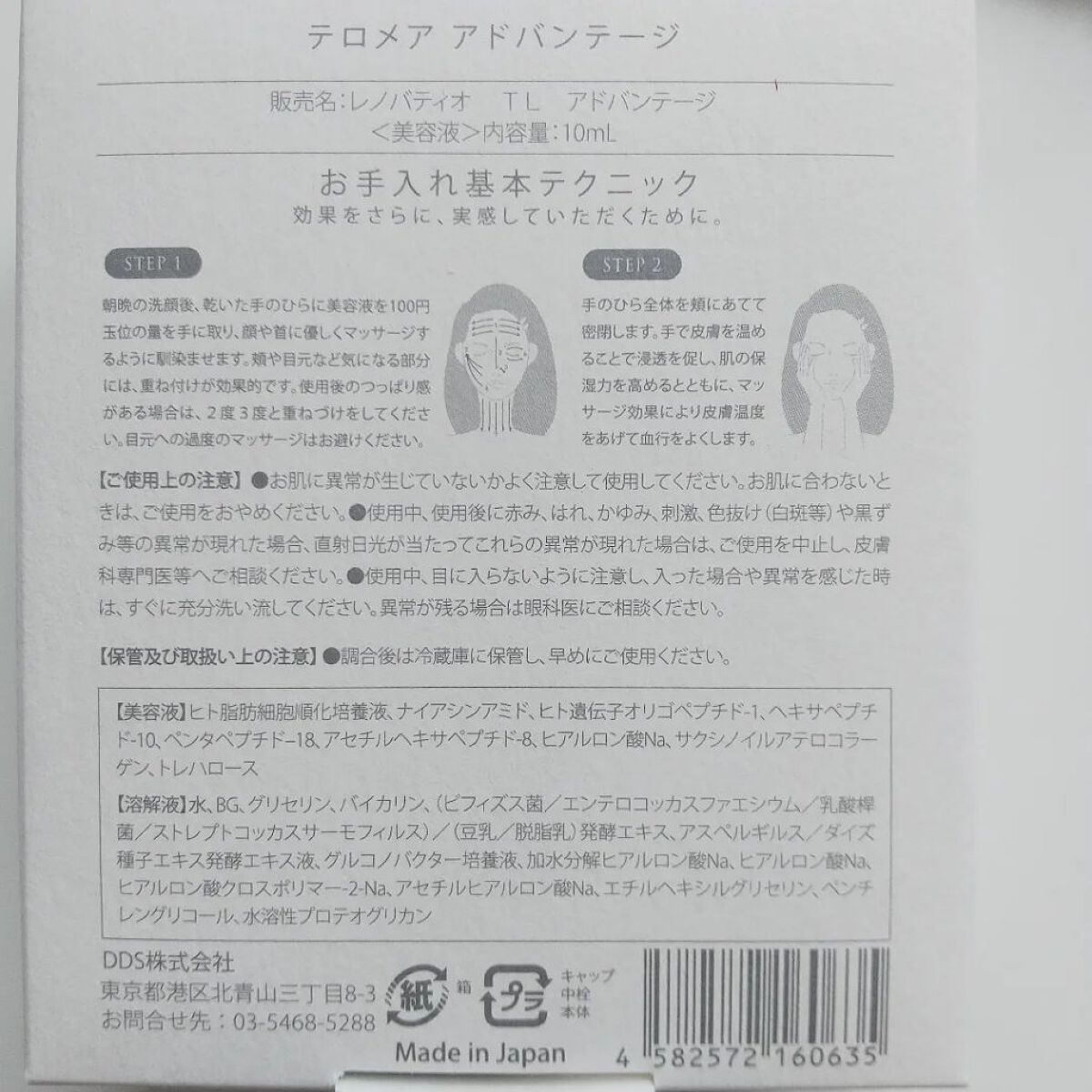 日本で初めてフリーズドライ化粧品を製品化したフリーズドライ化粧品のパイオニア@ddsjapan.officialレノバティオテロメアアドバンテージを使ってみました♪成分を100%維持できるフリーズドライ加工でパウダーと液体が別々になっています...
