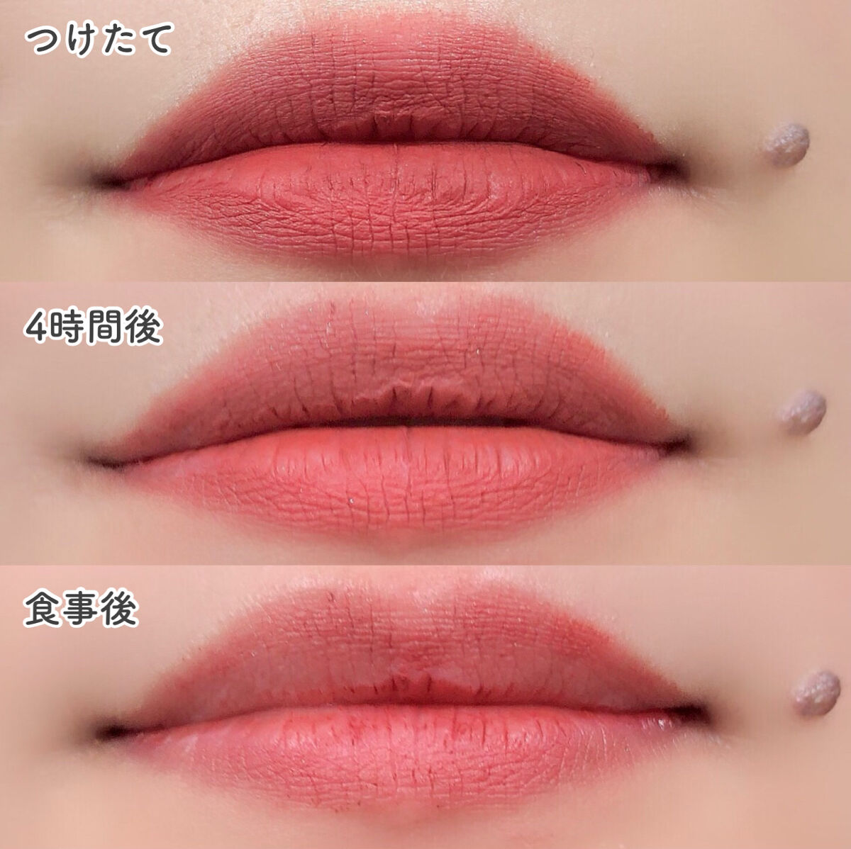- つけたての色が長時間持続 ふんわりマット質感に変化 落ちにくい液状リップ ■高発色スフレ処方:唇から蒸発する水分を活用してしっとりジェル膜へ変化 液状リップの油分が揮発してふんわりマット質感に変化 ■リップモンスターの機能を踏襲 つけたそのままの色が長時間持続 マスクをしても色落ちしにくい 飲み物を飲んでもカップにつきにくい