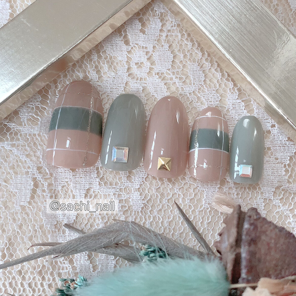 ワンカラーでも指ごとに色を変えるだけでオシャレに見えます💕 画像のようにゴールドラインとストーンを少し足すだけで華やかさがアップ🥰 何度かご紹介したことのあるスポンジで作るグラデーションです✨ スポンジを使うことで境目が綺麗に馴染んでくれます💕 アルミホイルの上でブラウンとトップコートを1:1くらいで混ぜたものを、トップコートのハケに取って3箇所に塗るだけ👌 事前に混ぜたものを塗ることで、爪の上でぼかすより簡単に出来ます💕 ベースカラーが乾く前に点置きしてぼかすことで綺麗にぼかせます✨ スピードが大事なので、使うポリッシュのキャップは全て開けておきましょう😊 天然石のラインはガタガタの方がより天然石っぽく見えるので、ラインを描くのが苦手な方でも大丈夫🙆♀️ 難しそうに見えて、やってみると意外と簡単に出来ます♡