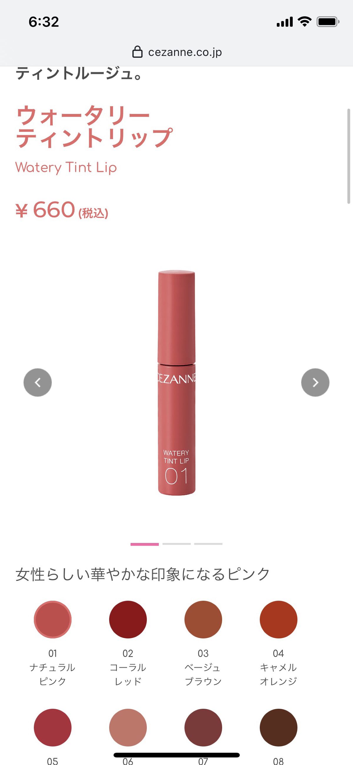 - ツヤ×色×潤いをキープする、セザンヌの新濡れツヤリップ みずみずしい濡れツヤ感ある仕上がりで、発色とツヤが長続きするティントリップです。ティントの発色を透明のベールで覆うリップコートのような処方で、ツヤ感と色をキープします。さらに、唇表面のべたつきは少なく、しっとり潤うオイルinウォーター処方を採用しています。