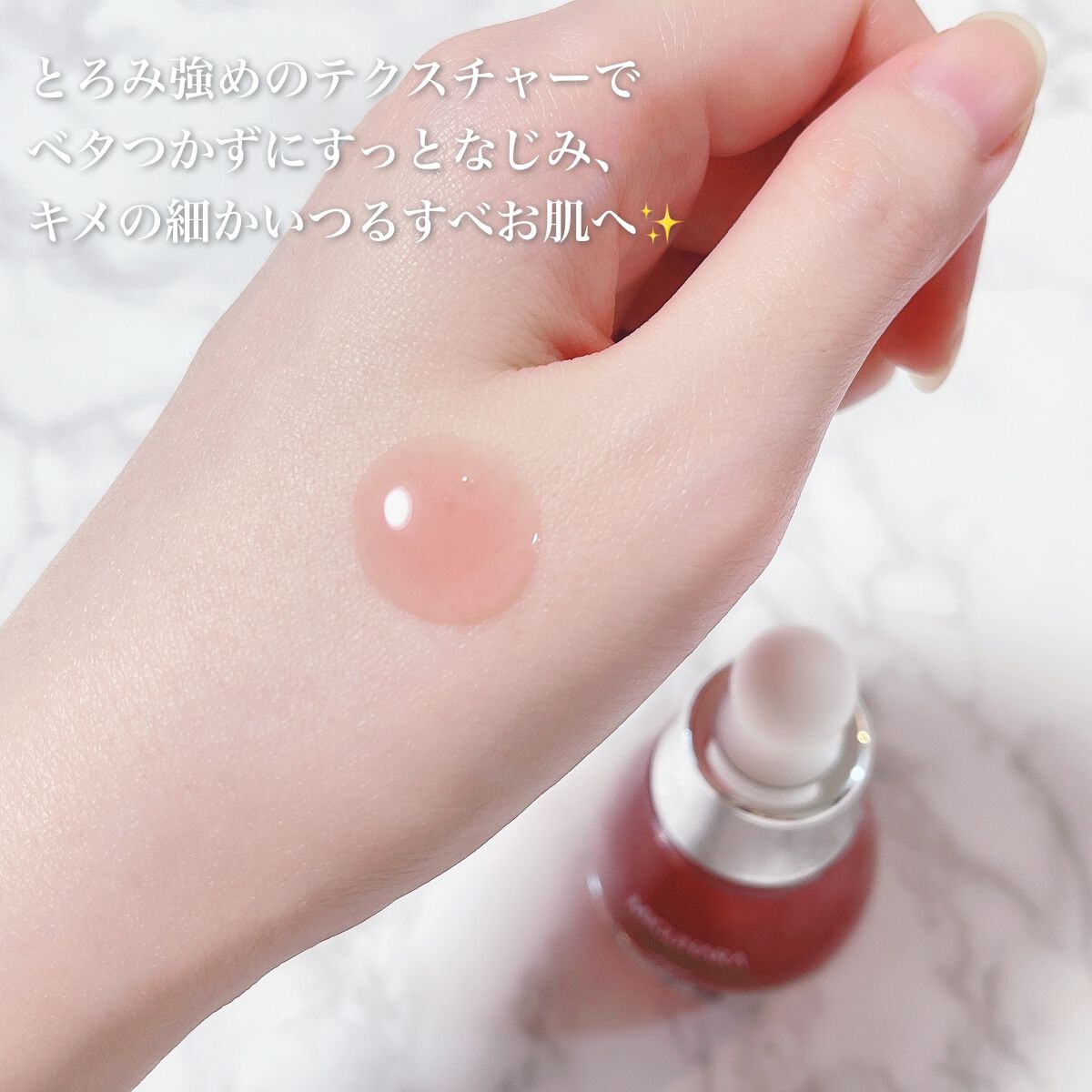 | サラッとしてて 少しとろみがあるかな? くらいのテクスチャーで 肌なじみがよくて とてもしっとりしてツヤ肌になります。 | 詳細を見る | ||