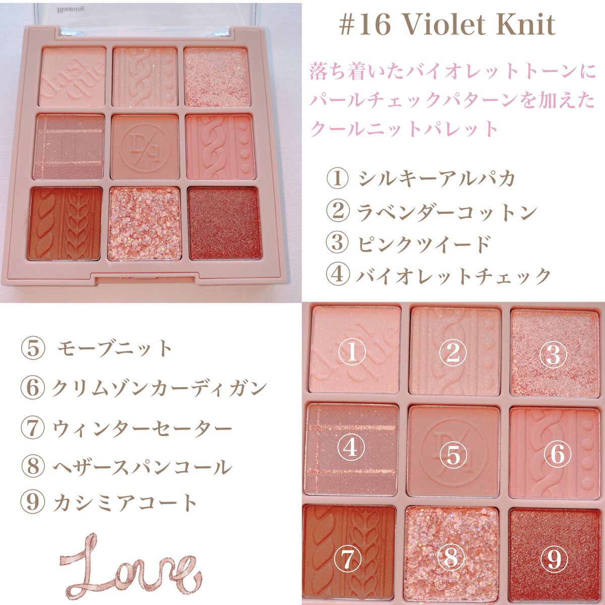 - 訪れる春のときめきを、桜の花びらに閉じ込めたスウィートブロッサム アイシャドウパレット。 #01 訪れる春のときめきを、舞い散る桜の花びらにインスピレーションを得て表現したアイシャドウパレット。 #02 やわらかく可憐なピンクトーンを基調とした9色構成で、ナチュラルな血色感メイクから、深みのある上品なアイメイクまで幅広く演出します。 #03 カシミヤのようにしっとりなめらかなマットテクスチャが、まぶたに密着し、クリアで美しい発色を実現。 #04 ムラになりにくく、誰でも簡単に自然で美しいブレンディングが可能です。 春の始まりを告げる、桜のように甘く愛らしいピンクピーチの香りを閉じ込めた『スウィートブロッサム コレクション』 咲き誇る花々の香りの中で、最も甘くやさしく広がる Sweet Blossom. ほんのりと広がっていくピンクピーチと春の旅路を、ぜひご一緒にお楽しみください。