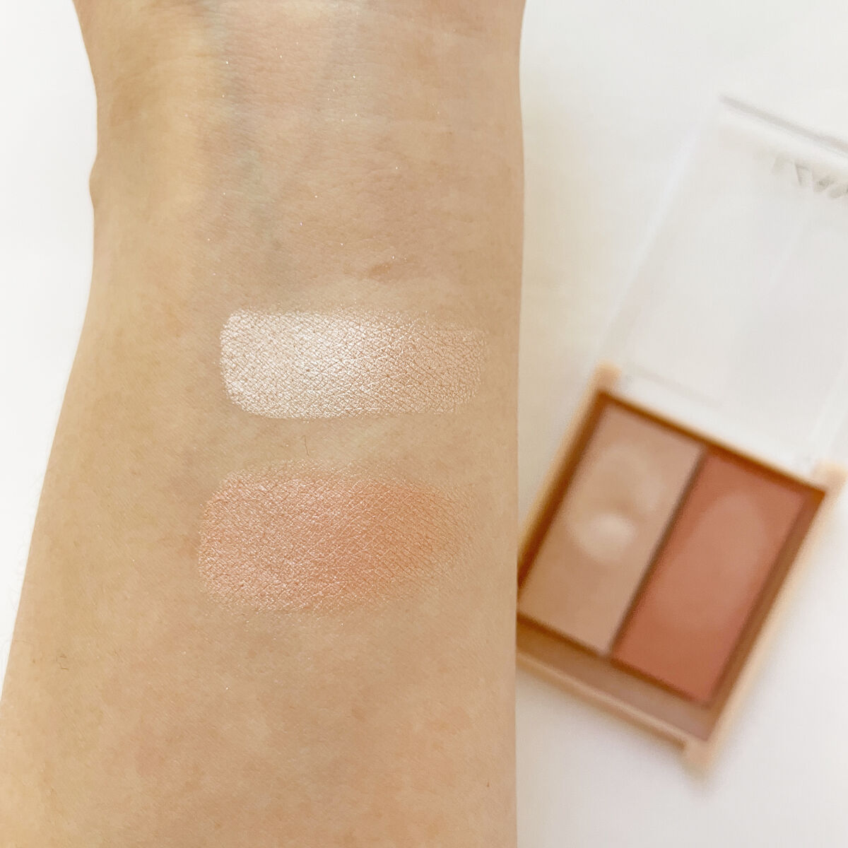 テクスチャーはクリームアイシャドウなので体温でジュワッと溶ける感じなのですが他社のクリームアイシャドウよりも柔らかめだなと感じました。 手で取ると少量でもすごく綺麗なラメ感が出るのでとにかくめちゃくちゃ可愛いです。 お肌に乗せた時の色と仕上がりにめちゃくちゃテンションが上がりました!ほんっっとに可愛いオレンジブラウン! 薄くのばして重ねてもあまりムラが気にならないのでパパッとメイクするときにも使えるしこれ単色でもすごく可愛い。 クリームアイシャドウの中ではまぶたの溝に溜まる量も少なめに感じました。もちろんほんのり溜まっちゃうんですがカラーのおかげもありあまり気にならないかな?という感じ。 カラーの可愛さに本当にびっくりしました。そしてクリームアイシャドウとしてもしっとり感と密着感のバランスが程よくてすごく使いやすく感じています。