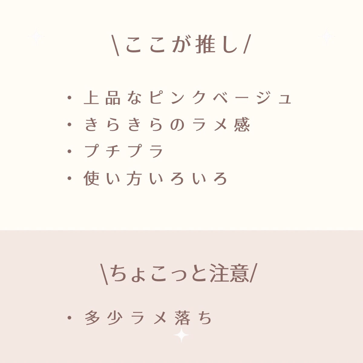 買って後悔しない。 きらきら感とくすみピンクベージュが良すぎて 目元に載せた瞬間、このアイシャドウの虜になります🥀 普通にまぶたにのせるのもいいけれど、下まぶたにつけるとよりアンニュイな雰囲気に💭 ぜひ手に取ってみて下さい❕
