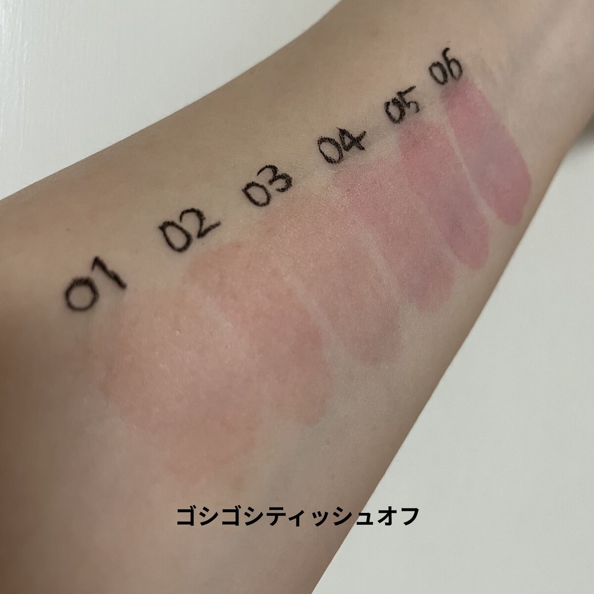 - <01 BEST BEIGE MENU(推し杏子ベージュ)> 水、ジフェニルジメチコン、リンゴ酸ジイソステアリル、ビスジグリセリルボリアシルアジペート-2、水添ポリイソブテン、ダイマー ジリノール酸ダイマージリノレイルビス(ベヘニル/イソステアリル/フィトステリル)、ジグリセリン、セチルPEG/PPG-10/1ジメチコン、DPG、水添ポリ (C6-14 オレフィン)、ポリソルベート60、イソステアリン酸ソルビタン、ダイマージリノール酸ジイソステアリン酸ポリ グリセリル-3、ペンチレングリコール、(アクリル酸ヒドロキシエチル/アクリロイルジメチルタウリンNa)コポリマー、トリ(カプリル酸/ カプリン酸)グリセリル、スクワラン、セテアレス-20、(エチレン/プロピレン)コポリマー、フェノキシエタノール、グリセリン、ポリグリ セリン-3、香料、エチルヘキシルグリセリン、ハマメリス葉エキス、オニユリエキス、BG、酸化チタン、黄5、赤227、赤104(1)、青1 <02 CORAL INFLUENCER(イエベ必須コーラル)> 水、ジフェニルジメチコン、リンゴ酸ジイソステアリル、ビスジグリセリルボリアシルアジペート-2、水添ポリイソブテン、ダイマー ジリノール酸ダイマージリノレイルビス(ベヘニル/イソステアリル/フィトステリル)、ジグリセリン、セチルPEG/PPG-10/1ジメチコン、DPG、水添ポリ (C6-14 オレフィン)、ポリソルベート60、イソステアリン酸ソルビタン、ダイマージリノール酸ジイソステアリン酸ポリ グリセリル-3、ペンチレングリコール、(アクリル酸ヒドロキシエチル/アクリロイルジメチルタウリンNa)コポリマー、トリ(カプリル酸/ カプリン酸)グリセリル、スクワラン、セテアレス-20、(エチレン/プロピレン)コポリマー、フェノキシエタノール、グリセリン、ポリグリ セリン-3、香料、エチルヘキシルグリセリン、ハマメリス葉エキス、オニユリエキス、BG、酸化チタン、黄5、赤227、赤104(1)、青1 <03 ROSE IN MIND(いいねローズ)> 水、ジフェニルジメチコン、リンゴ酸ジイソステアリル、ビスジグリセリルポリアシルアジペート-2、水添ポリイソブテン、ダイマージリノール酸ダイマージリノレイルビス(ベヘニル/イソステアリル/フィトステリル)、ジグリセリン、DPG、セチルPEG/PPG-10/1ジメチコン、水添ポリデセン、ポリソルベート60、イソステアリン酸ソルビタン、ダイマージリノール酸ジイソステアリン酸ポリグリセリル-3、ペンチレングリコール、(アクリル酸ヒドロキシエチル/アクリロイルジメチルタウリンNa)コポリマー、トリ(カプリル酸/カプリン酸)グリセリル、スクワラン、セテアレス-20、(エチレン/プロピレン)コポリマー、フェノキシエタノール、グリセリン、香料、エチルヘキシルグリセリン、ハマメリス葉エキス、オニユリエキス、BG、テトラ(ジ-t-ブチルヒドロキシヒドロケイヒ酸)ペンタエリスリチル、酸化チタン、黄5、赤104(1)、赤227、青1 <04 PINK YOUTH(ベイビー天使)> 水、ジフェニルジメチコン、リンゴ酸ジイソステアリル、ビスジグリセリルボリアシルアジペート-2、水添ポリイソブテン、ダイマー ジリノール酸ダイマージリノレイルビス(ベヘニル/イソステアリル/フィトステリル)、ジグリセリン、セチルPEG/PPG-10/1ジメチコン、DPG、水添ポリ (C6-14オレフィン)、ポリソルベート60、イソステアリン酸ソルビタン、ダイマージリノール酸ジイソステアリン酸ポリ グリセリル-3、ペンチレングリコール、(アクリル酸ヒドロキシエチル/アクリロイルジメチルタウリンNa)コポリマー、トリ(カプリル酸/ カプリン酸)グリセリル、スクワラン、セテアレス-20、(エチレン/プロピレン)コポリマー、フェノキシエタノール、ポリグリセリン-3、香料、エチルヘキシルグリセリン、グリセリン、水酸化Al、ポリアクリル酸アンモニウム、BG、ハマメリス葉エキス、オニユリエキス、酸化チタン、赤227、黄4、赤104 (1) 黄5、青1 <05 CHERRY SO WHAT(どうしたのチェリー)> 水、ジフェニルジメチコン、リンゴ酸ジイソステアリル、ビスジグリセリルポリアシルアジペート-2、水添ポリイソブテン、ダイマージリノール酸ダイマージリノレイルビス(ベヘニル/イソステアリル/フィトステリル)、ジグリセリン、セチルPEG/PPG-10/1ジメチコン、DPG、水添ポリ(C6-14オレフィン)、ポリソルベート60、イソステアリン酸ソルビタン、ダイマージリノール酸ジイソステアリン酸ポリグリセリル-3、ペンチレングリコール、(アクリル酸ヒドロキシエチル/アクリロイルジメチルタウリンNa)コポリマー、トリ(カプリル酸/カプリン酸)グリセリル、スクワラン、セテアレス-20、(エチレン/プロピレン)コポリマー、フェノキシエタノール、ポリグリセリン-3、香料、エチルヘキシルグリセリン、グリセリン、ハマメリス葉エキス、オニユリエキス、BG、赤227、黄4、赤104(1)、黄5、青1 <06 PLUM UPDATE(プロフ写プラム)> 水、ジフェニルジメチコン、リンゴ酸ジイソステアリル、ビスジグリセリルポリアシルアジペート-2、水添ポリイソブテン、ダイマー ジリノール酸ダイマージリノレイルビス(ベヘニル/イソステアリル/フィトステリル)、