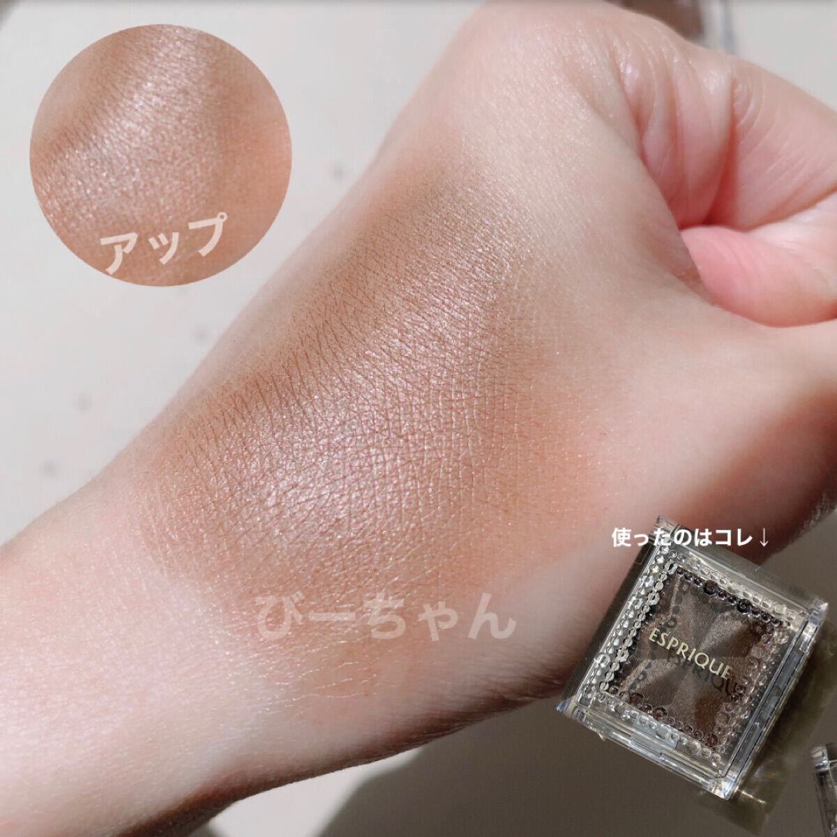エスプリークの単色カラーが10年以上前から好きなのですが、当時はめっちゃ流行ってて限定色出るたびすぐ売り切れ! まばゆいラメ入り明るめグリーンのGR700を目尻側においしそうなマットブラウンのBR305を締め色に ラメもキラキラでかわいいんですよ。