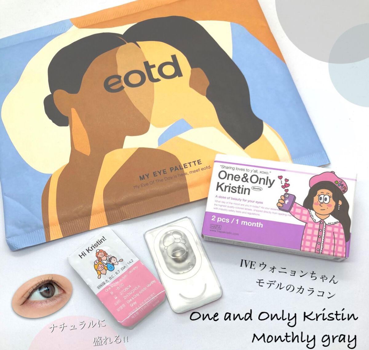 IVEのウォニョンちゃんレンズ! カラーはLIGHT GRAY🩶 日本限定プラスサイズのマンスリーカラコンです✨️ 淡いブルーがかったライトグレーのクールカラー💎 ハイライトデザインでちゅるんとした水光カラコン𓈒𓍯 ナチュラルさとクールさがあって冬にピッタリなレンズかなと思います.☃︎.'.°☽